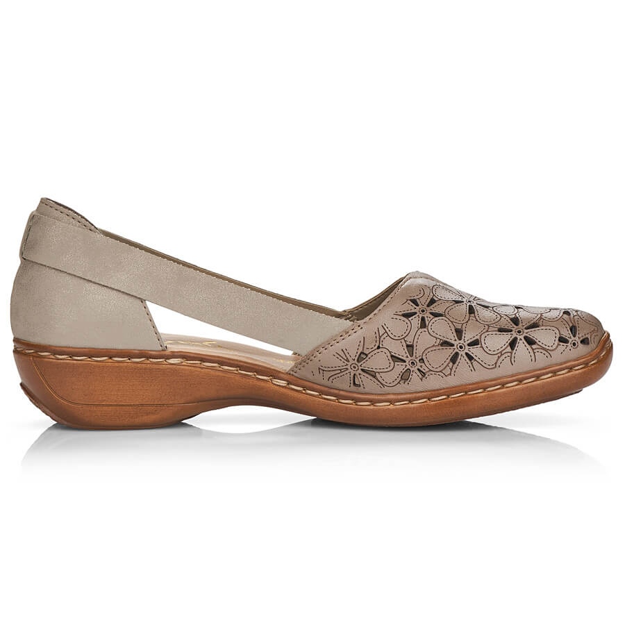 Rieker Pantofi bej din piele ajurata Rieker 41356
