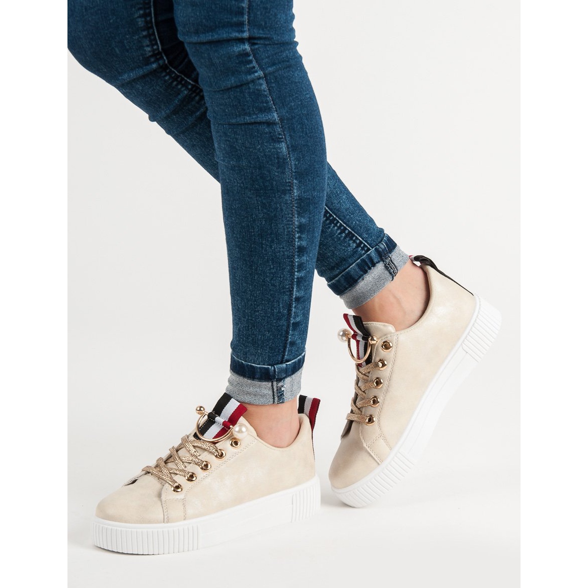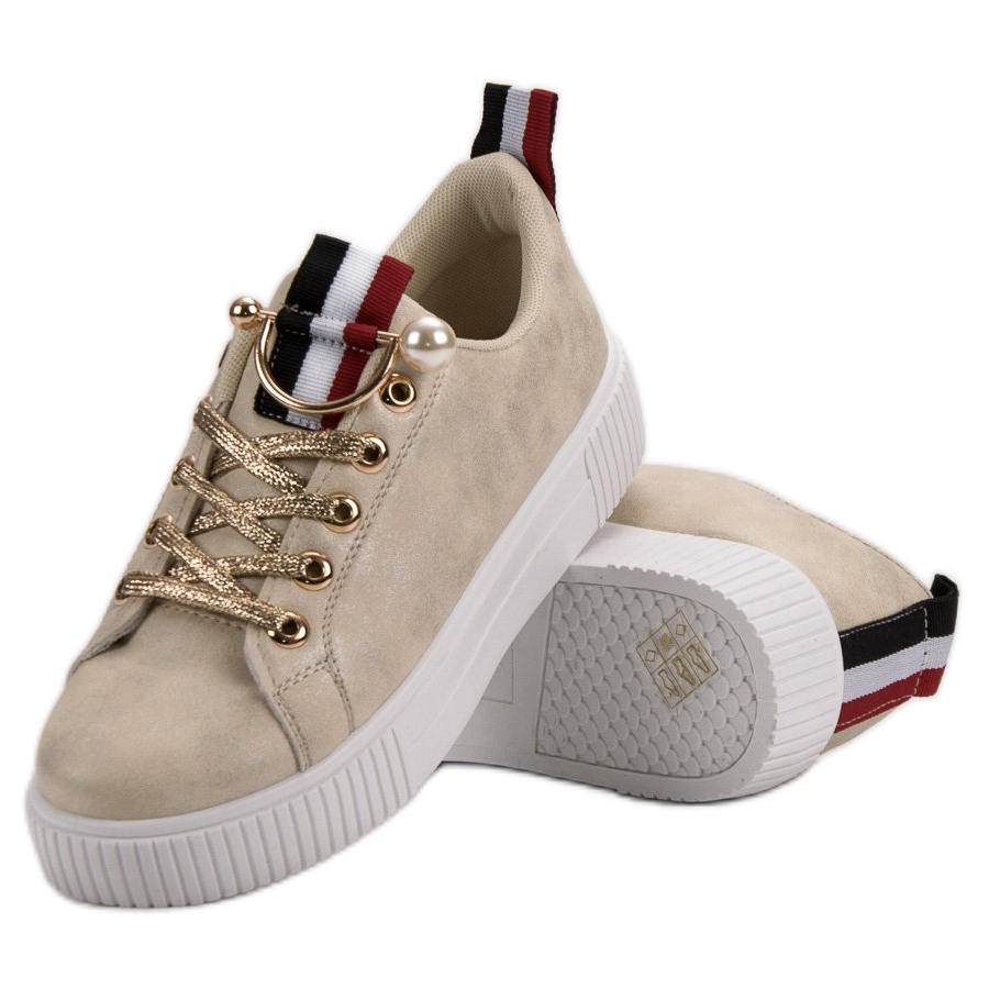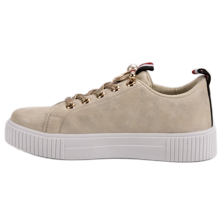 Realizați într-o nuanță delicată de aur, acești pantofi adaugă o notă unică oricărei ținute, făcându-te vedeta fiecărui moment. Modelul se caracterizeaza printr-o inaltime mica, ceea ce il face perfect pentru utilizarea de zi cu zi, atat primavara cat si vara, cat si toamna si iarna. Datorita folosirii unei talpi sintetice cu banda de rulare, asigura confort si stabilitate la fiecare pas.