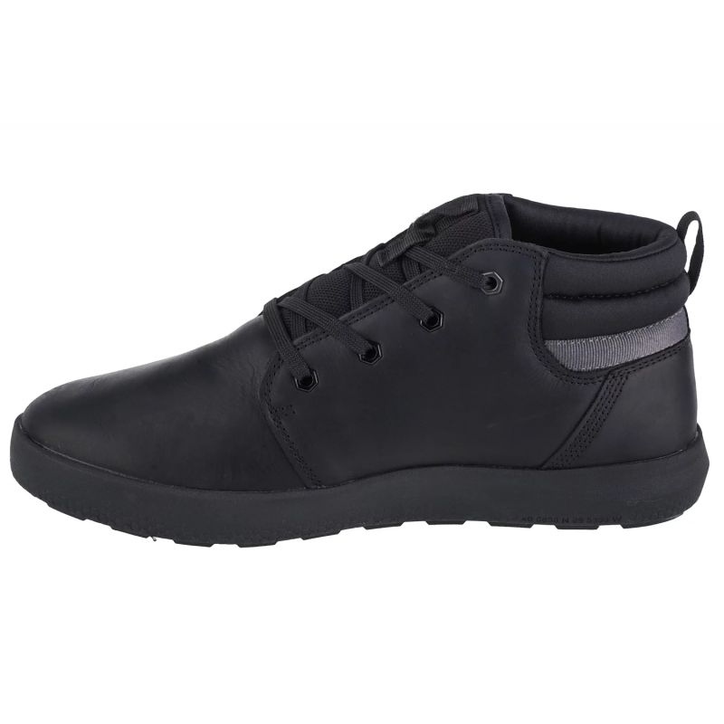 Culoarea neagră a pantofilor Caterpillar Proxy Mid Fleece M P110571 îi face universali și se potrivesc diverselor stiluri - de la casual la mai sportiv. Logo-ul producătorului adaugă un accent caracteristic, de marcă.