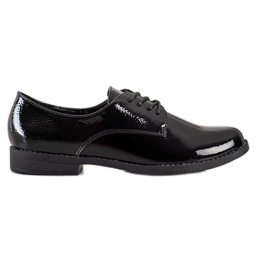 Pantofii clasici cu șireturi SHELOVET în negru sunt o propunere elegantă pentru fiecare femeie care prețuiește stilul și confortul. Realizați din material de înaltă calitate care imită pielea naturală, pantofii se disting printr-o suprafață lăcuită, care le adaugă stil.