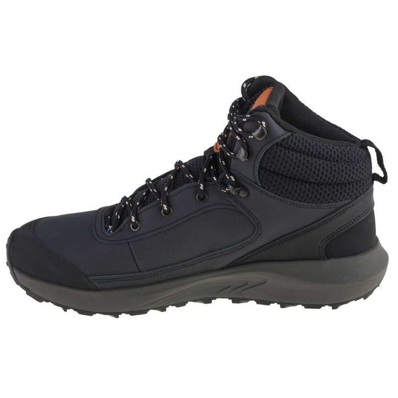 Pantofi Columbia Trailstorm Peak din mijlocul anului 1987041010 - pantofi solizi, eleganți și universali de trekking pentru bărbați care vor funcționa atât pe traseu, cât și în condiții urbane. Modelul negru combină pielea naturală cu întăriri din plastic și materiale sintetice, garantând durabilitatea și îngrijirea ușoară.