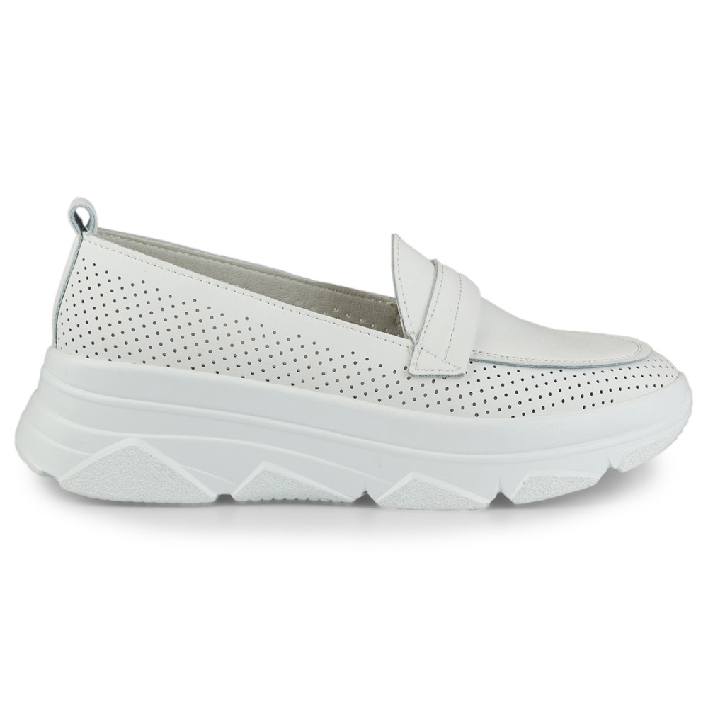 Pantofi confortabili pentru femei deschise - piele alb, natural