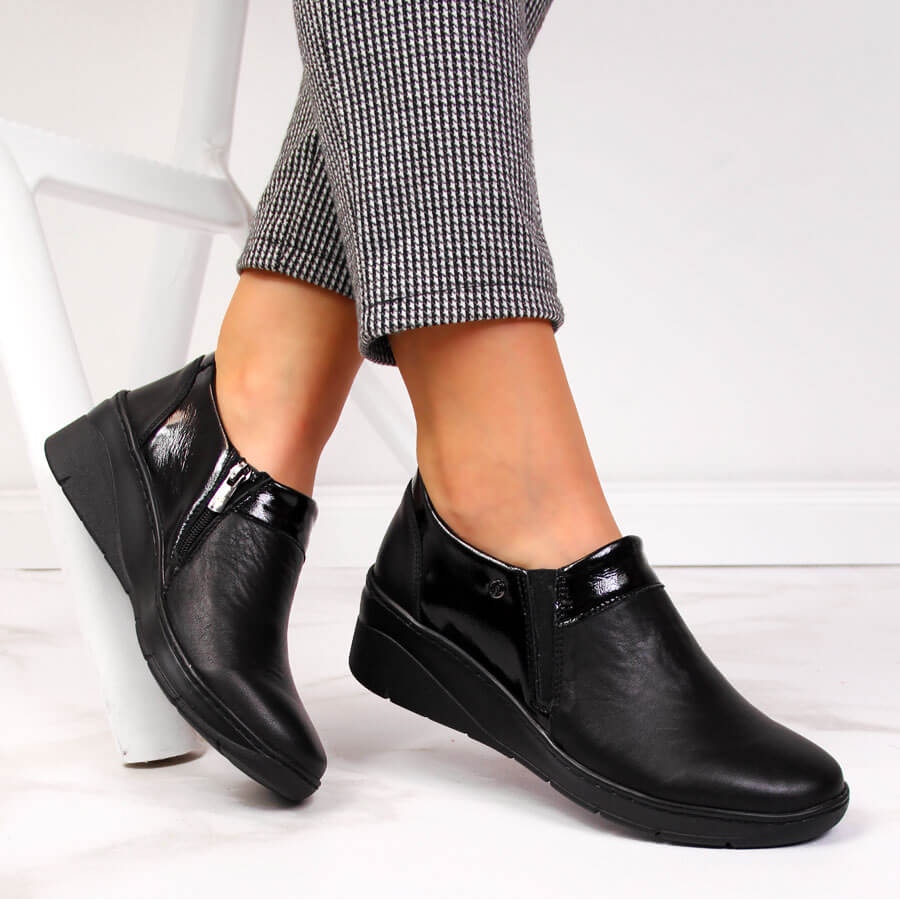 Helios Pantofi confortabili de dama din piele neagra Helios 348 negru