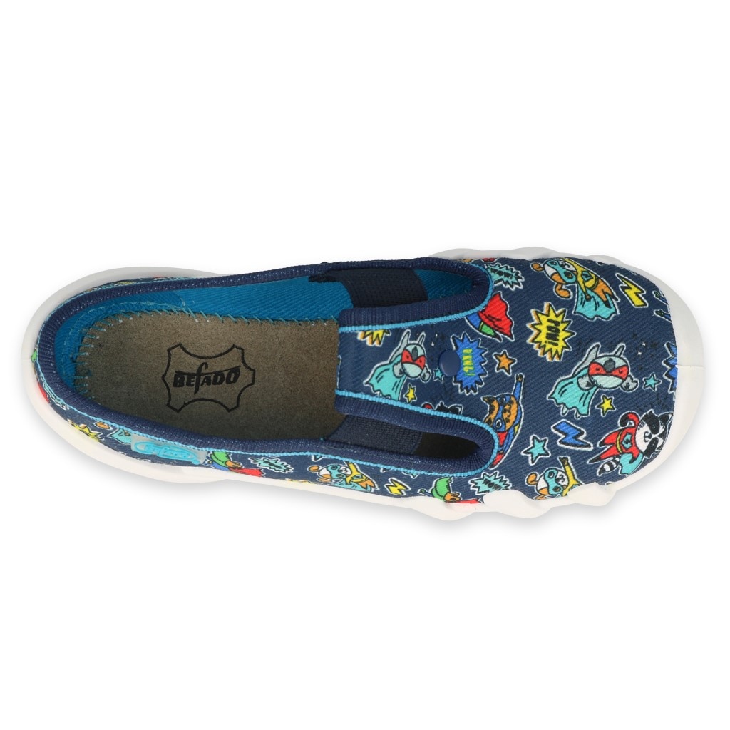 Pantofii pentru copii Befado 290X233 in albastru bleumarin cu accente multicolore sunt alegerea perfecta pentru fiecare prescolar. Acești pantofi unici au fost proiectați având în vedere confortul și siguranța copiilor. Datorita talpii respirabile, picioarele copilului tau vor fi intotdeauna ventilate, ceea ce previne supraincalzirea si transpiratia.