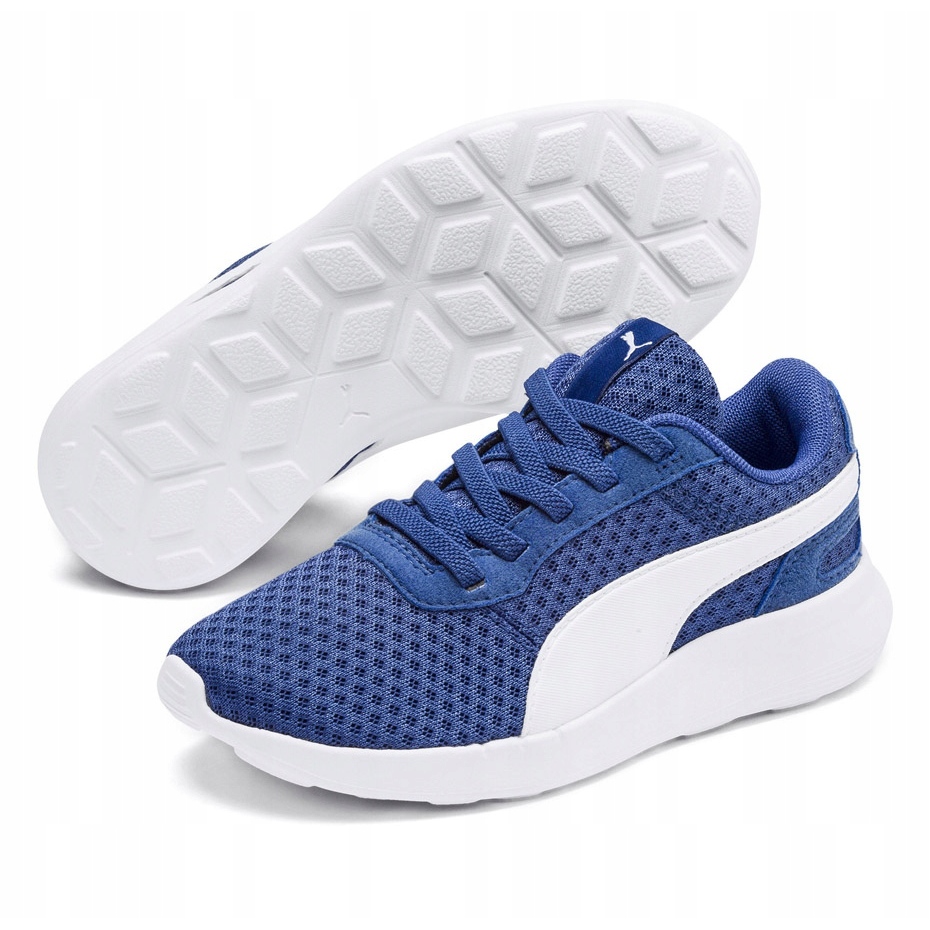 Pantofii pentru copii Puma ST Activate albastru sunt o propunere excelentă pentru copiii activi. Partea superioară ușoară din plasă, dantelată, oferă respirabilitate și confort în timpul unei zile lungi de activitate și mișcare. Talpa intermediara EVA. Talpă de cauciuc. Panou lateral contrastant Formstrip.