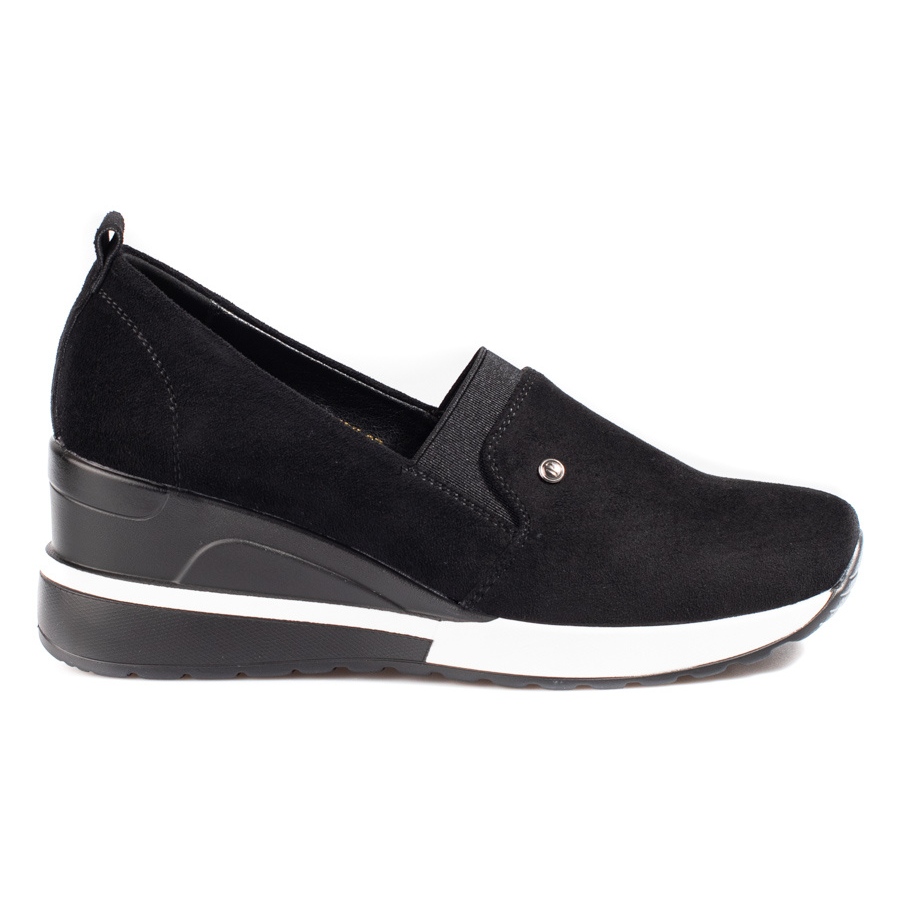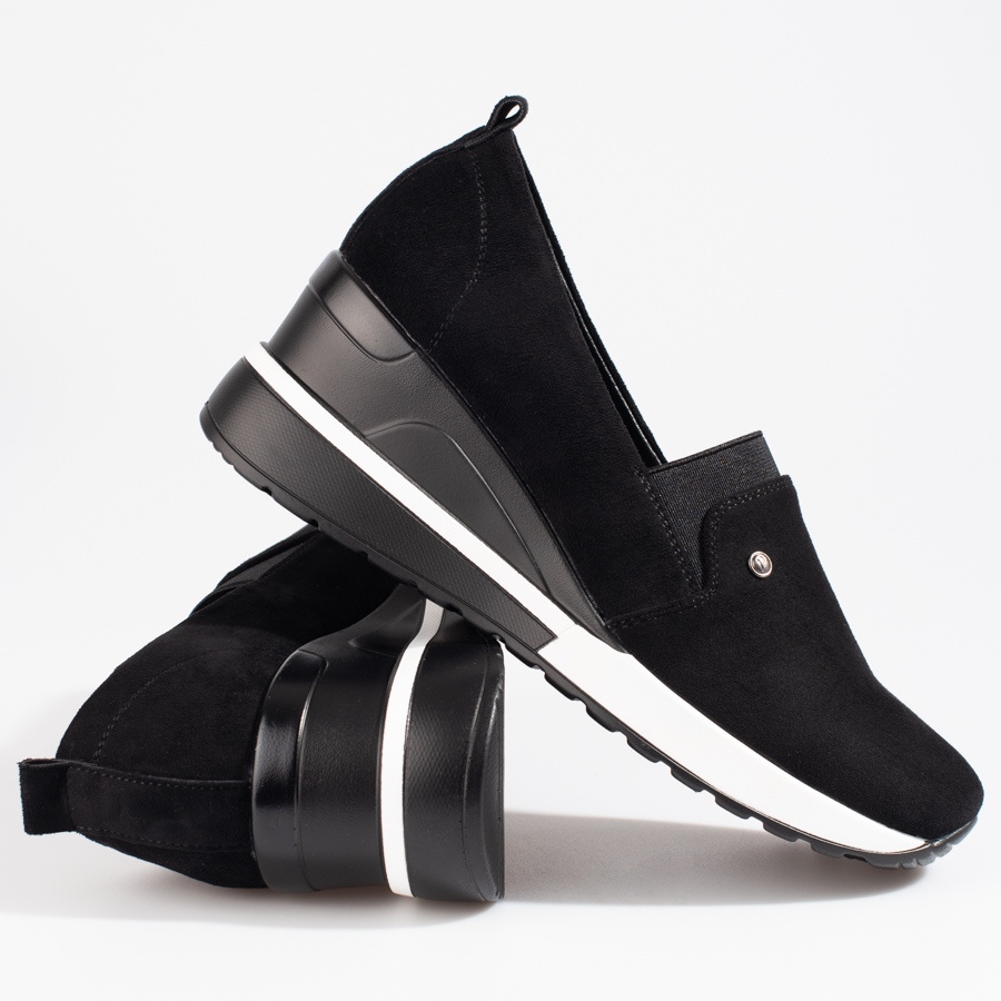 Faceți cunoștință cu pantofii cu pană de damă de la SHELOVET - alegerea perfectă pentru femeile care apreciază confortul și eleganța în stilul de zi cu zi. Acești pantofi de piele de căprioară neagră combină designul la modă cu funcționalitatea. Realizate din piele intoarsa ecologica de inalta calitate, acestea ofera nu doar un aspect atractiv, ci si confort la purtare.
