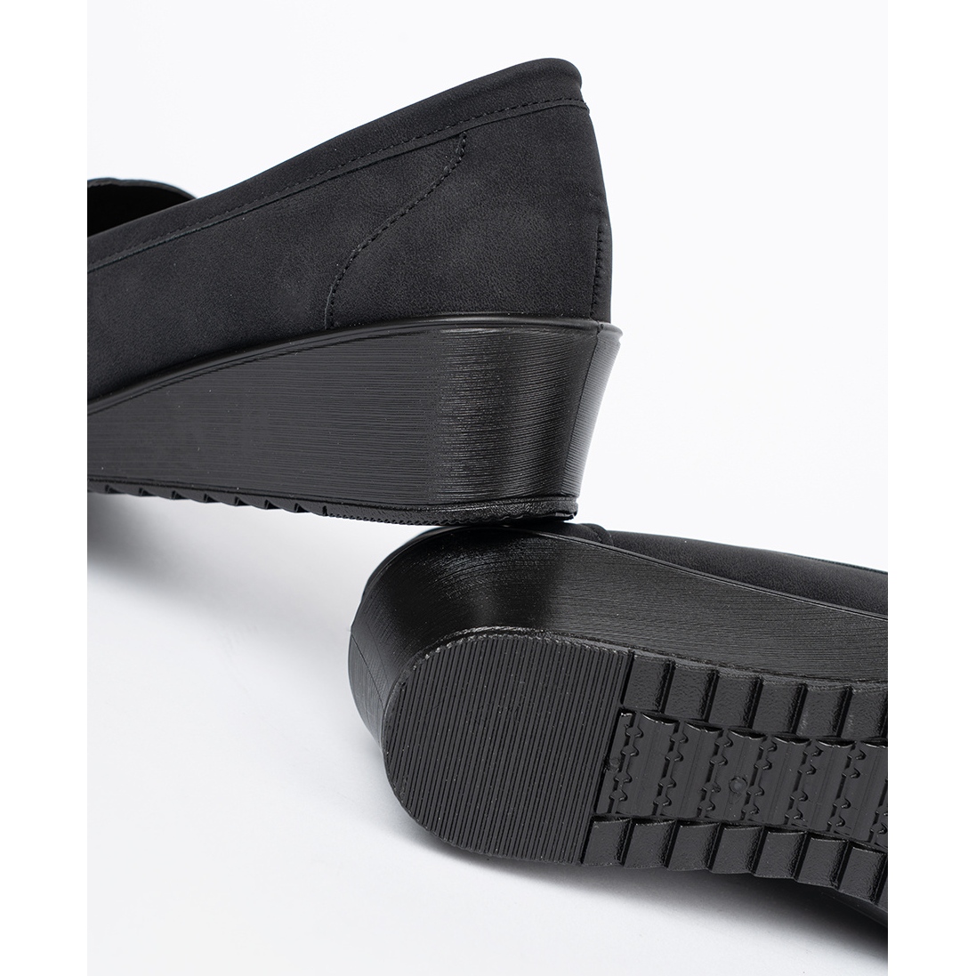 O pană înaltă de 4 cm oferă confort atunci când purtați și, în același timp, adaugă ușurință întregii figuri. Construit -călcâiul rigidizat asigură stabilitatea, ceea ce este crucial pentru activitățile de zi cu zi. Un nas rotund și un tip complet de nas adaugă clasă și eleganță, iar fermoarul introdus facilitează punerea și îndepărtarea pantofilor.