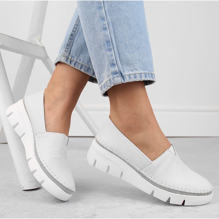 Detalii: Pantofi cu pană slip-on de damă, alb Filippo DP6161