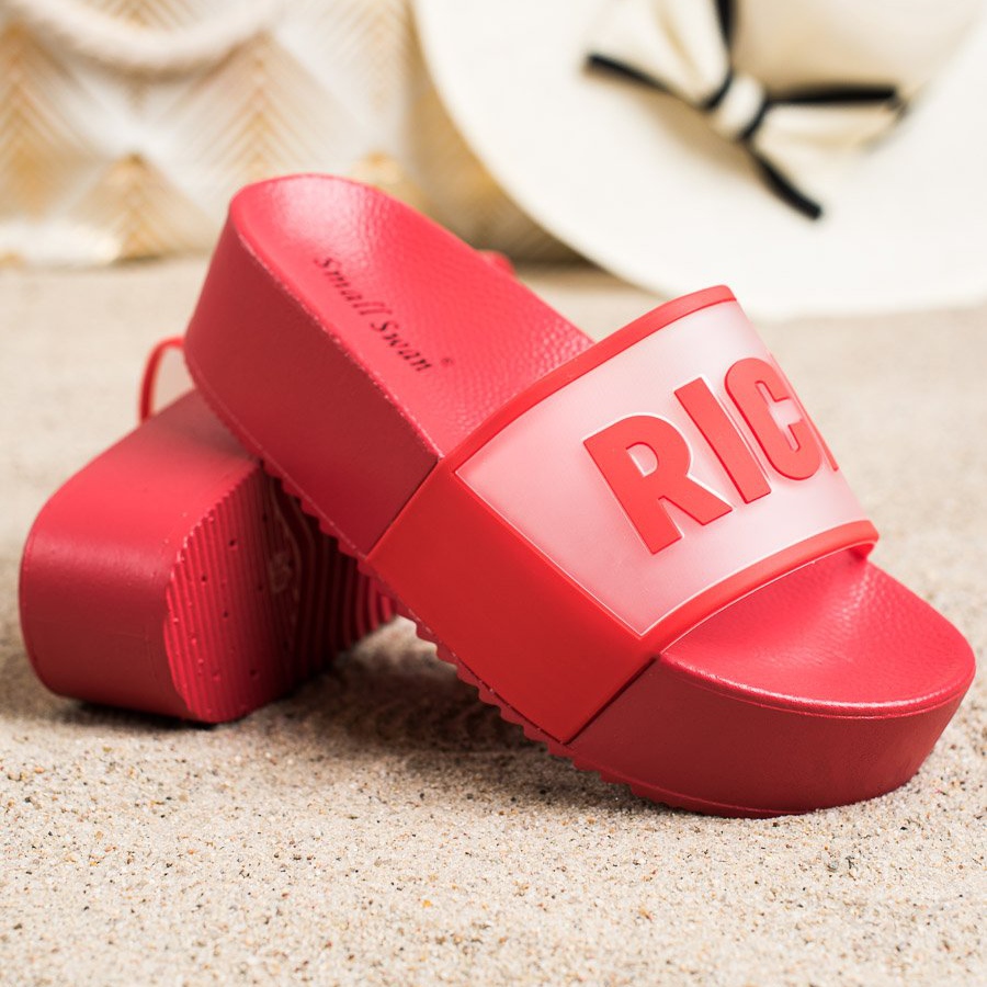 Faceți cunoștință cu șlapii Rich platformă de la producător Small Swan - alegerea perfectă pentru zilele de primăvară și vară! Acești șlapi eleganti, într-o culoare roșie intensă, combină confortul și designul la modă, ceea ce le face un plus perfect pentru stilul de zi cu zi, casual.