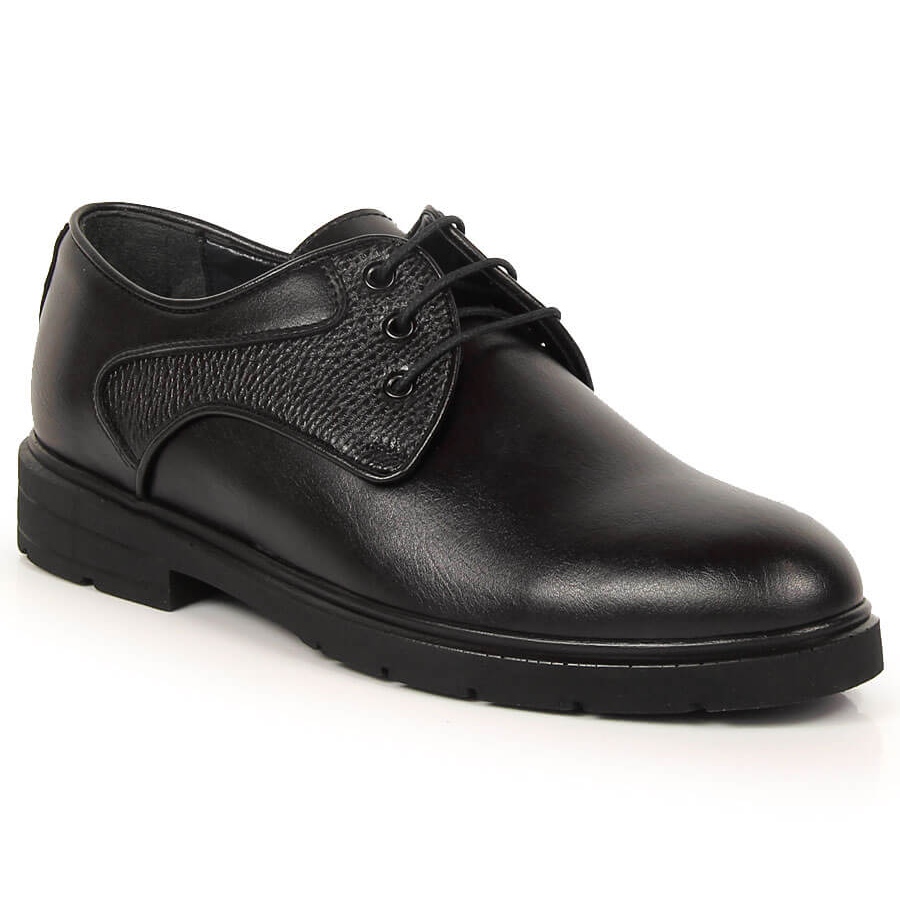 Detalii: Pantofi cu șireturi din piele neagră pentru bărbați Kingle negru