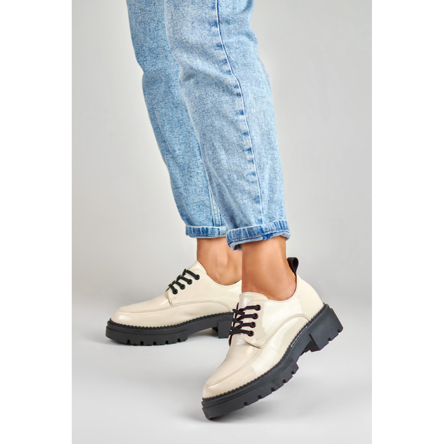 Detalii: La.Fi Pantofi cu șireturi lăcuți în bej
