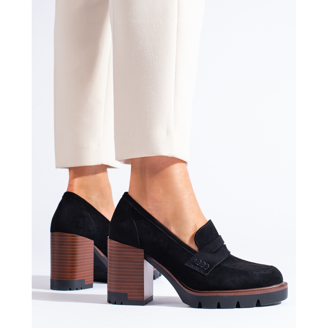 Detalii: Pantofi cu toc înalt de damă Shelovet din piele intoarsa neagra negru