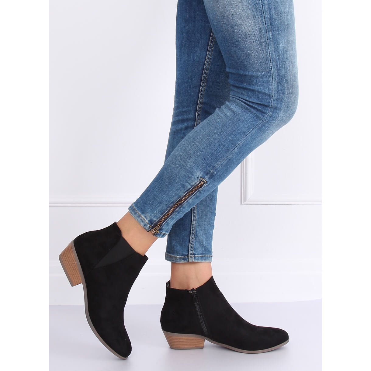 Inna marka Pantofi negri cu toc mic W06-17 Piele de căprioară neagră negru
