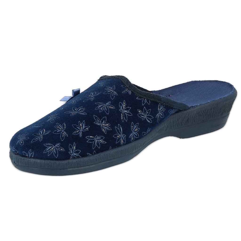 Va prezentam papuci de dama Befado, model 219D477, intr-o culoare la moda bleumarin cu accente de albastru. Acești șlapi eleganti sunt alegerea perfectă pentru a fi purtati acasă sau în curte, garantând confort și comoditate în orice situație.