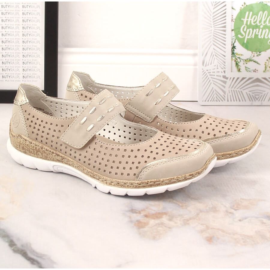 Detalii: Pantofi dama de vara din piele cu velcro bej Rieker N4257-60