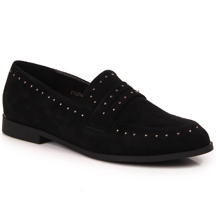 Va prezentam pantofi de dama eleganti din piele intoarsa cu nituri in culoarea negru profund, creati de marca Laura La.Fi din ultima linie de produse PREMIUM. Acești pantofi unici sunt o combinație perfectă de design la modă și confort, perfectă atât pentru utilizarea de zi cu zi, cât și pentru ocazii speciale.