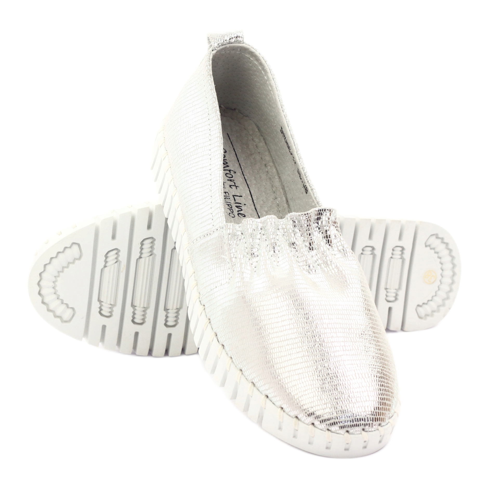 Pantofii de dama Filippo DP068 in argintiu si gri sunt alegerea perfecta pentru zilele de primavara si vara. Designul lor original atrage atenția datorită solzelor sale strălucitoare, care adaugă eleganță și caracter oricărui stil. Partea superioară și interioară a pantofilor sunt confecționate din piele naturală de înaltă calitate, ceea ce asigură durabilitatea și confortul la purtare.