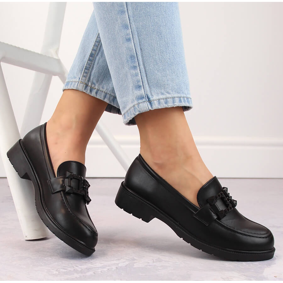 Detalii: Pantofi dama, mocasini slip-on cu decor, negru S.Barski HY371