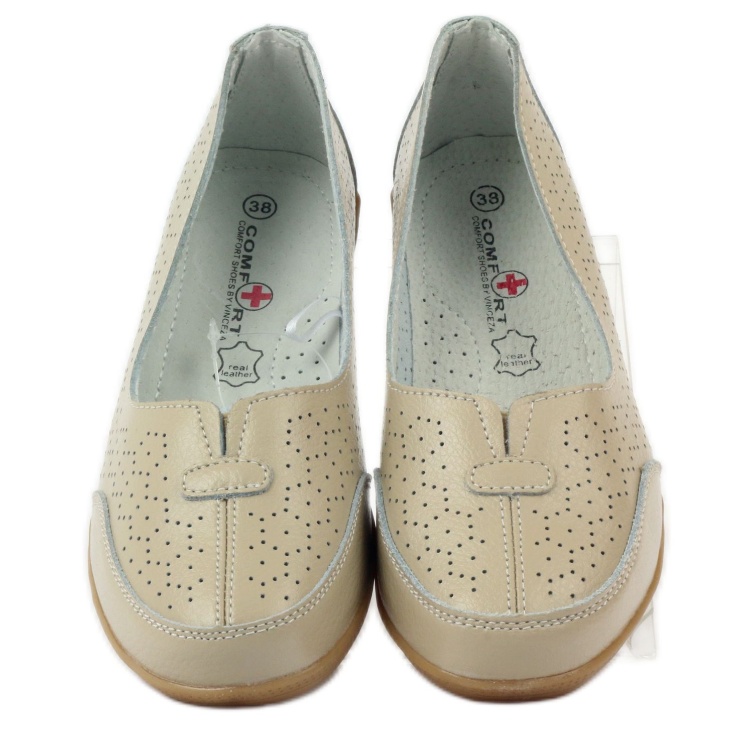 Pantofii dama perforati Vinceza intr-o culoare eleganta bej sunt o alegere ideala pentru femeile care doresc sa combine confortul cu designul la moda. Modelul wz.049 este confectionat din piele naturala de inalta calitate, care nu numai ca ofera lejeritate, ci si un farmec unic acestor pantofi.