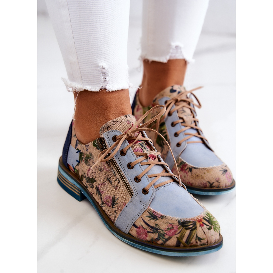 Maciejka Pantofi Dama Piele Cu Flori Maciejka 5096A-34 Albastru multicolor