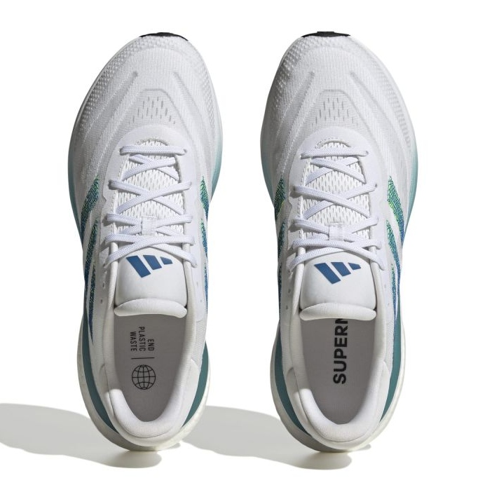 Pantofii de alergare Adidas Supernova 3 HQ1806 sunt pantofi sport albi pentru bărbați. Sunt destinate antrenamentelor intense de alergare, în special pe suprafețe dure. Pantofii sunt echipati cu o parte superioara din plasa care asigura o respirabilitate adecvata, astfel incat piciorul sa nu transpire in timpul exercitiului. Confortul de utilizare a pantofilor este sporit și de talpă - partea de călcâi folosește tehnologia Boost, iar partea din față - tehnologia Bounce.