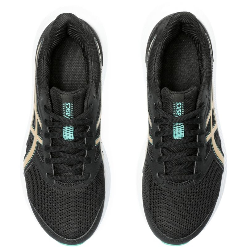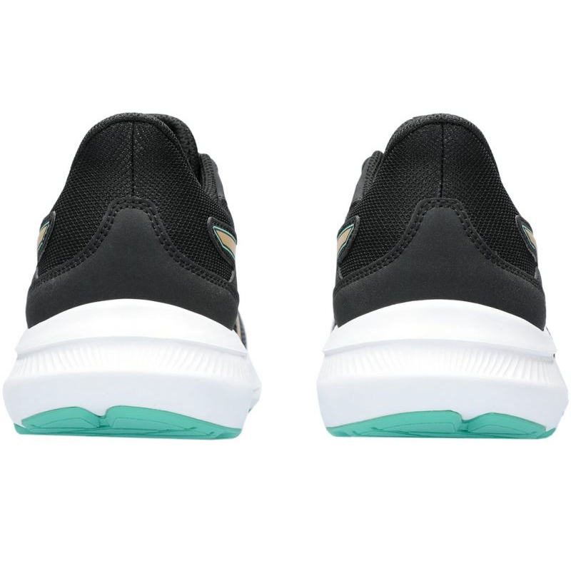 Pantofii Asics Jolt 4 se caracterizează printr-o culoare neagră elegantă cu accente decorative aurii, ceea ce îi face să arate bine în orice stil sportiv. În plus, închiderea cu șireturi permite ajustarea pantofului la nevoile individuale ale utilizatorului, asigurând stabilitate în timpul alergării.