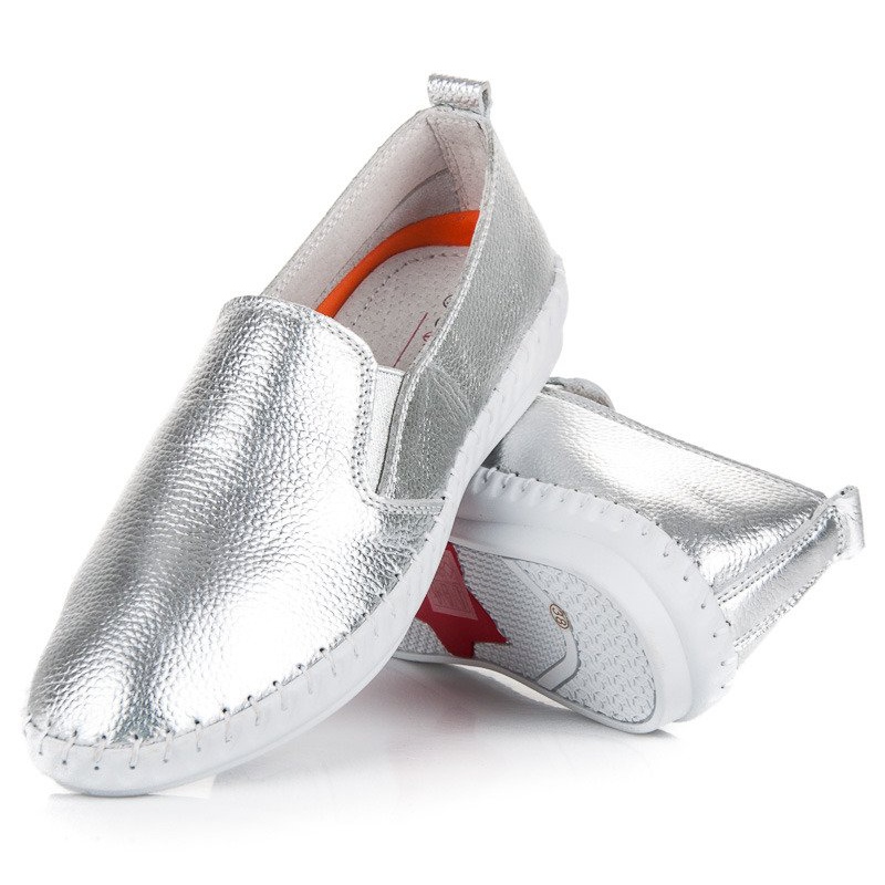Pantofiile argintii VINCEZA în gri sunt o alegere perfectă pentru femeile care doresc să adauge un pic de extravaganță stilului lor. Acești pantofi la modă au un aspect neobișnuit care cu siguranță va atrage atenția. Fabricate din piele naturală de înaltă calitate, garantează nu numai durabilitate, ci și un confort excepțional la purtare. Înălțimea lor mică și vârful rotund le fac perfecte pentru purtarea zilnică.