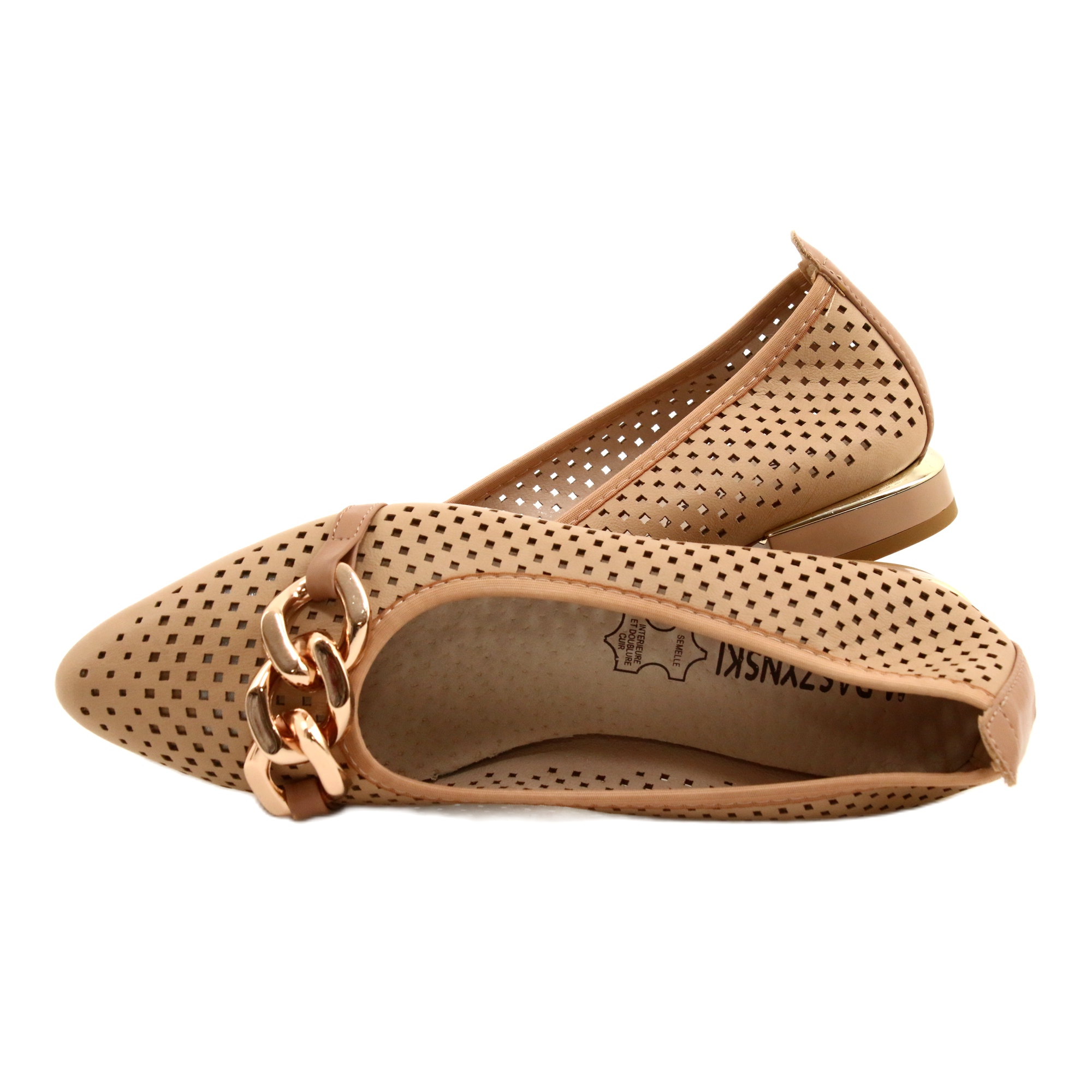 Detalii: M.Daszyński Pantofi de balerina ajurata cu lant Daszyński SA201-6 Bej-auriu