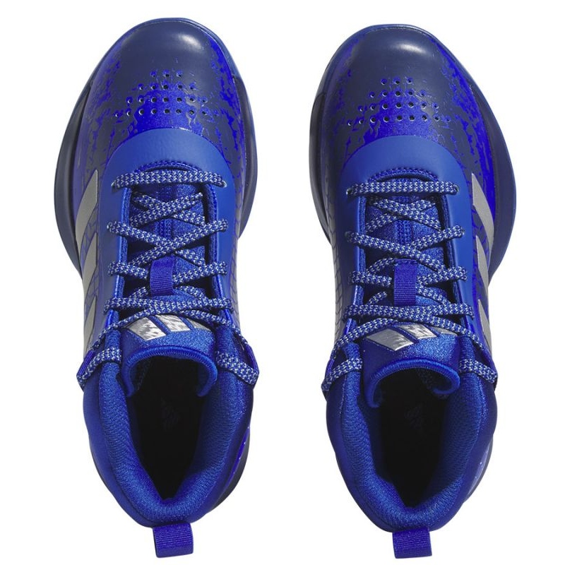 Adidas Cross Em Up Up 5 K lath Basketball Shoes (HQ8495) - Stil și comoditate pentru jucătorii tineri. Această încălțăminte de juniori, înaltă, în nuanțe de albastru, a fost proiectată cu vederea jocului în hol: oferă un suport stabil cu cuburi stabile, unele deținute datorită dantelării și amortizării necesare în timpul salturilor și aterizărilor dinamice.
