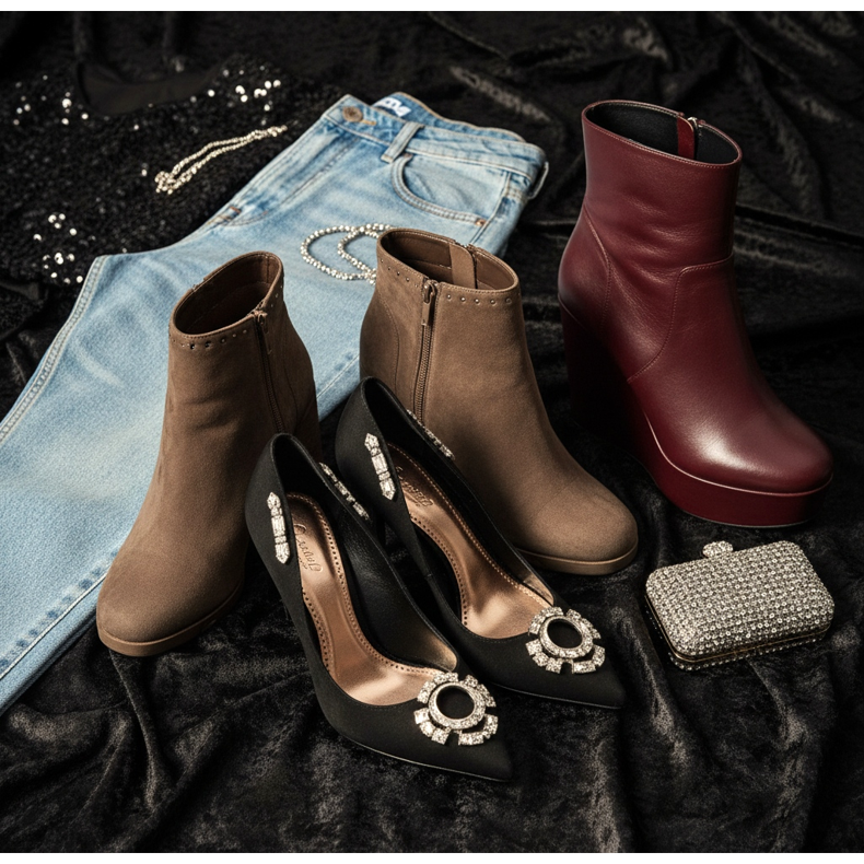 Soluția perfectă va fi tocuri înalte în culori discrete pe care le poți asorta cu restul ținutei tale. Dacă mergi la o petrecere de seară, poți alege modele cu decorațiuni atrăgătoare – de exemplu, cu cristale sau accente metalice.