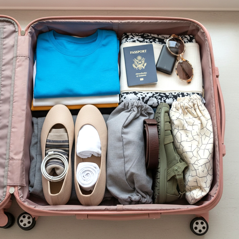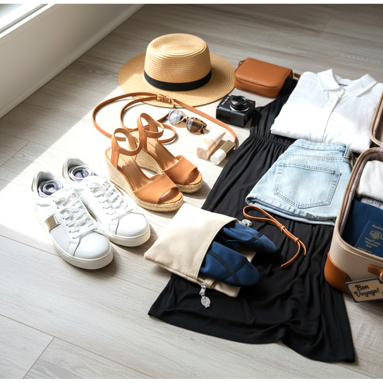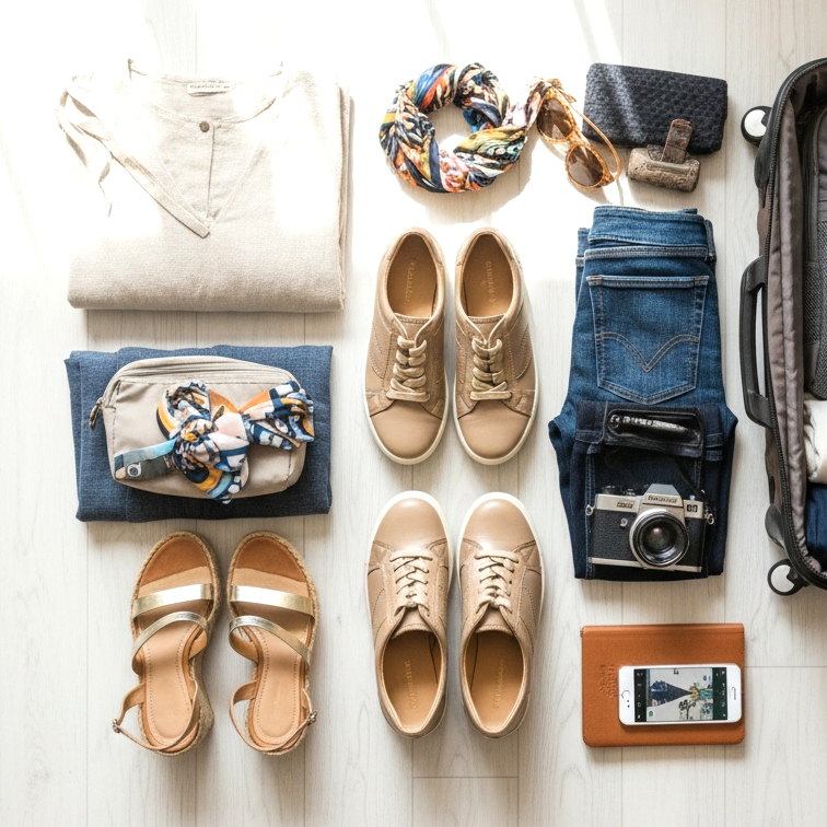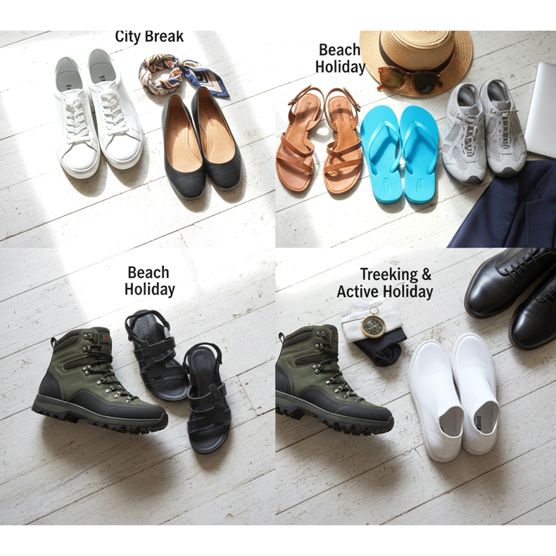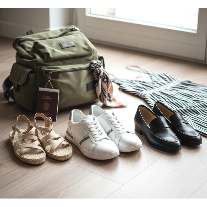 O formulă dovedită pentru fiecare călătorie este regula a trei perechi: pantofi comozi pentru vizitarea obiectivelor turistice, pantofi eleganți pentru ieșiri și pantofi de plajă sau sport, în funcție de natura călătoriei. Această combinație acoperă aproape orice situație, de la un jogging de dimineață la o cină de seară.