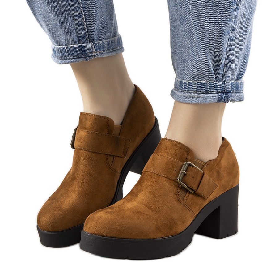 Stâlpul stabil de 7 centimetri nu numai că adaugă farmec, dar și evidențiază frumos picioarele, făcând silueta să pară subțire și feminină. Partea superioară din piele ecologică de căprioară într-o nuanță de maro nu este doar estetică, ci și practică - inserțiile flexibile asigură o îmbrăcare ușoară și o potrivire perfectă pe picior.