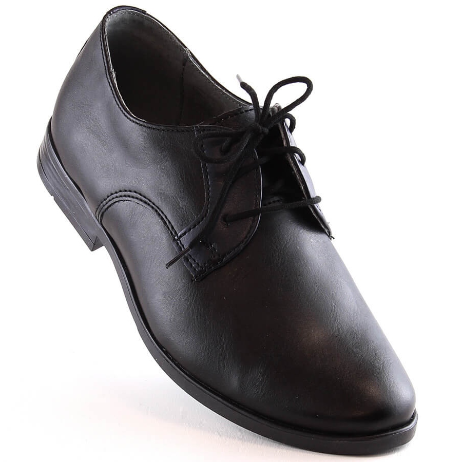 Pantofi clasici, negri formali pentru băieți din Kornecki, ideal pentru comuniune, sărbători de familie, școală și alte ocazii oficiale. Confecționate din piele ecologică de înaltă calitate (superioară) și piele naturală în căptușeală și talpă, acestea combină un aspect elegant cu durabilitate și purtând confort.