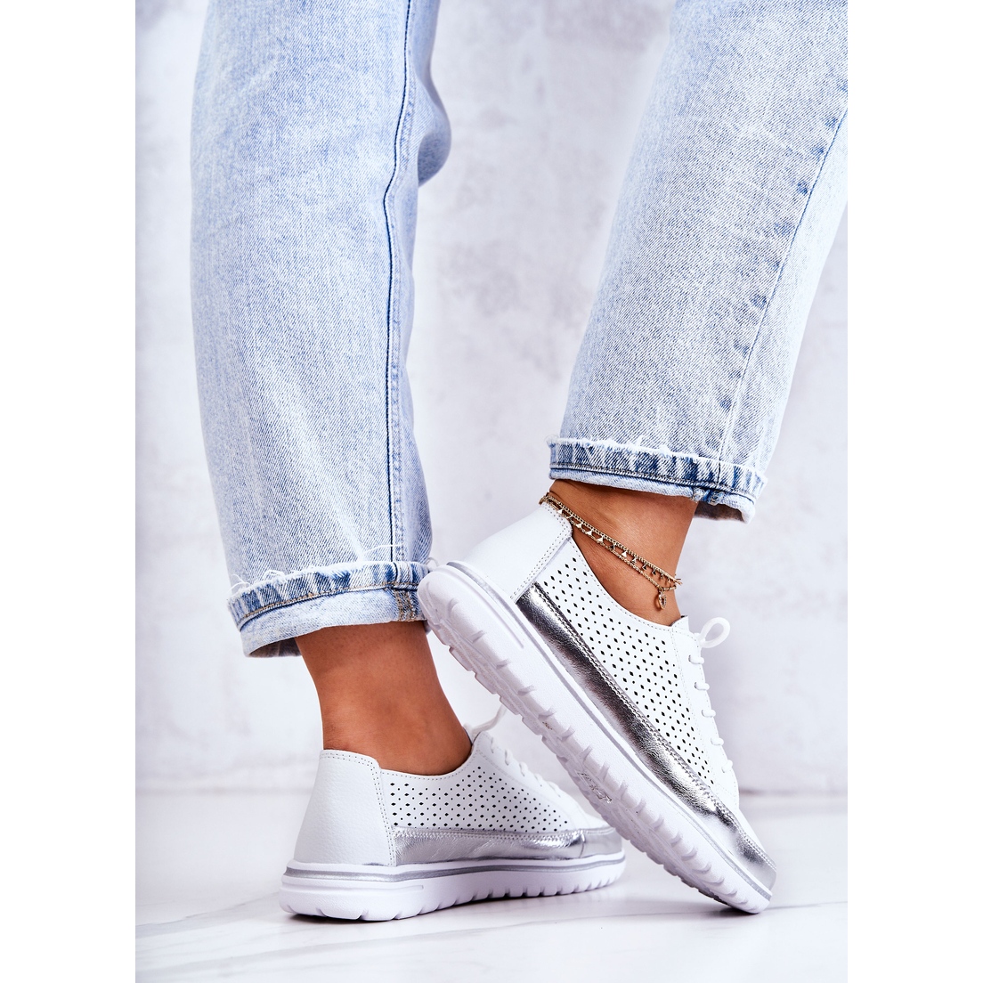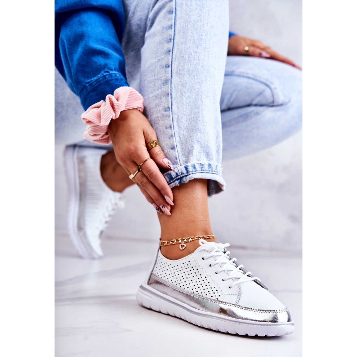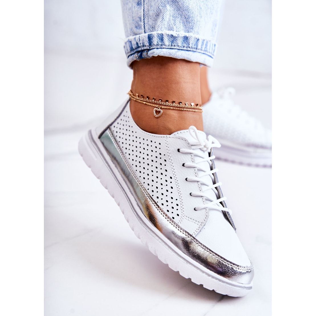 Detalii: Vinceza Pantofi de damă ajurati pe platformă albă Deloren argint