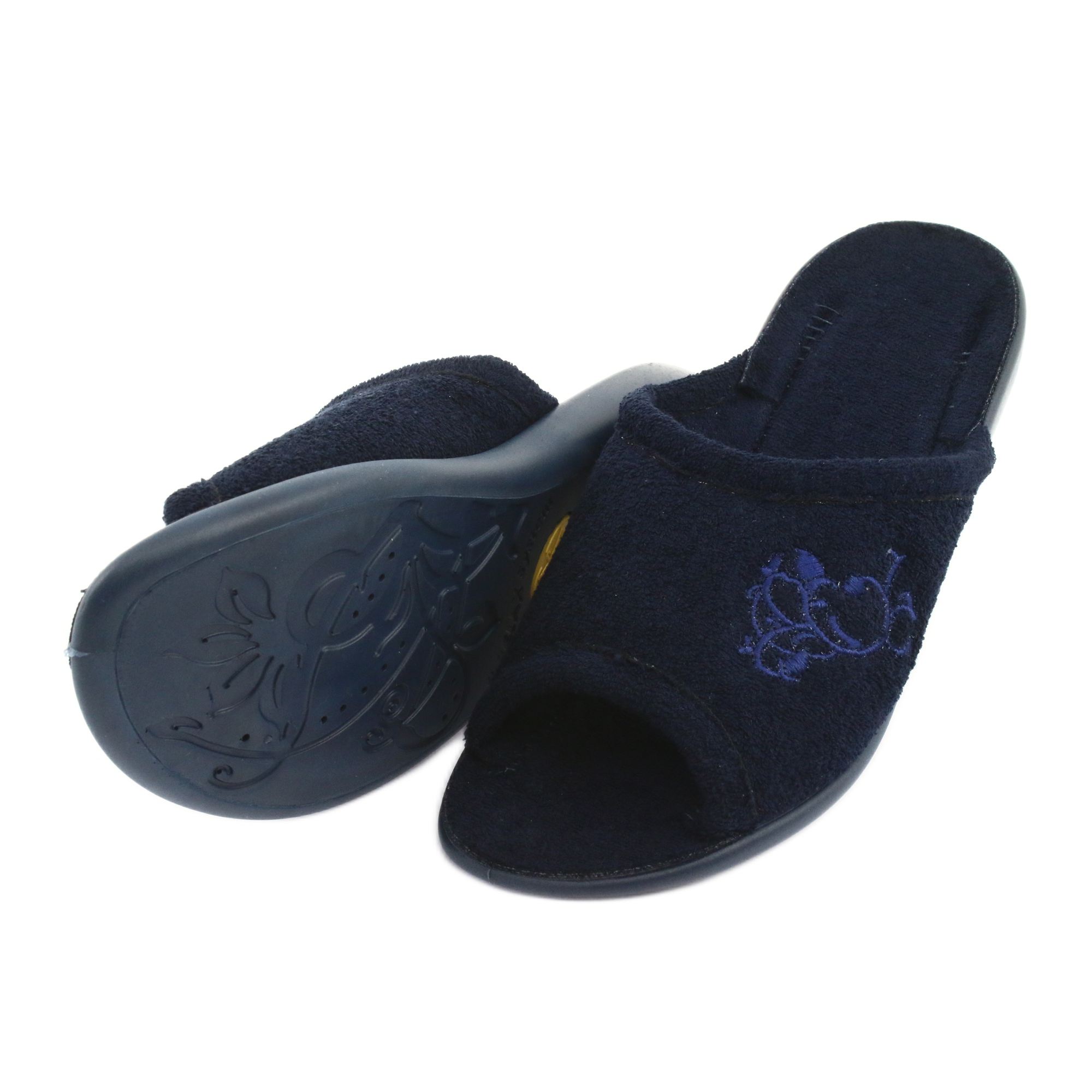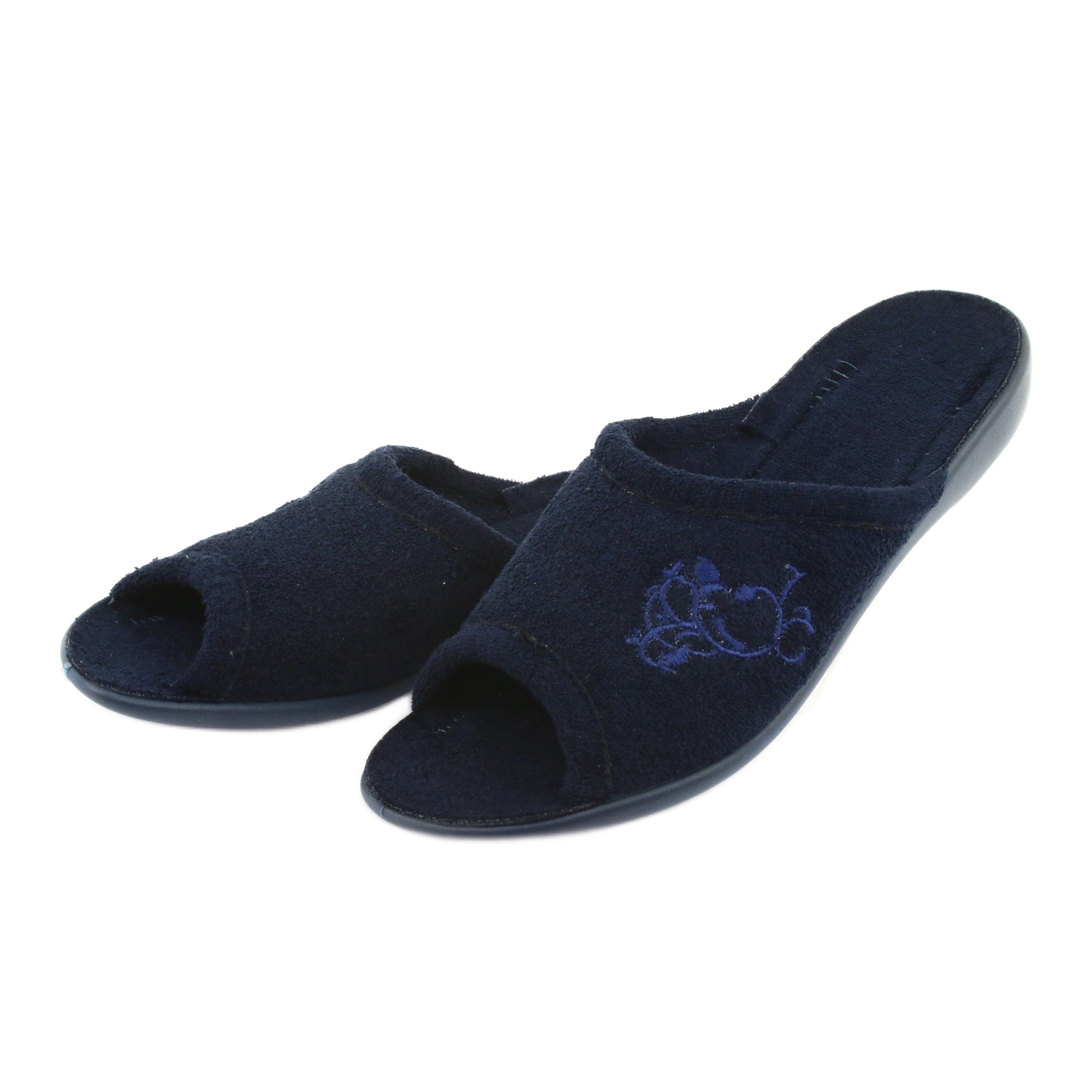 Faceți cunoștință cu papucii Viki de la brandul Befado - încălțăminte perfectă de damă care au devenit un element inseparabil al fiecărei relaxări acasă. În albastru bleumarin, acești papuci comozi combină eleganța cu funcționalitatea, făcând fiecare femeie să se simtă specială în ei.