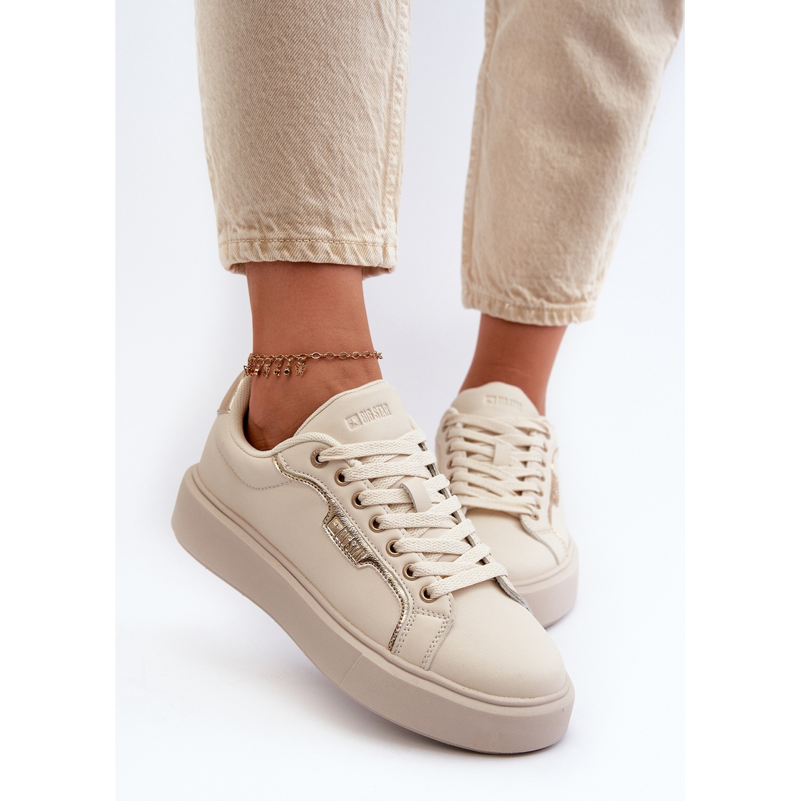 Vă prezentăm adidași ușori de femei de la Big Star Brand, modelul NN274334, într-o culoare bej elegantă, care se potrivește perfect cu tendințele de primăvară-vară. Create din piele ecologică de înaltă calitate, acești pantofi combină confortul cu un aspect la modă.
