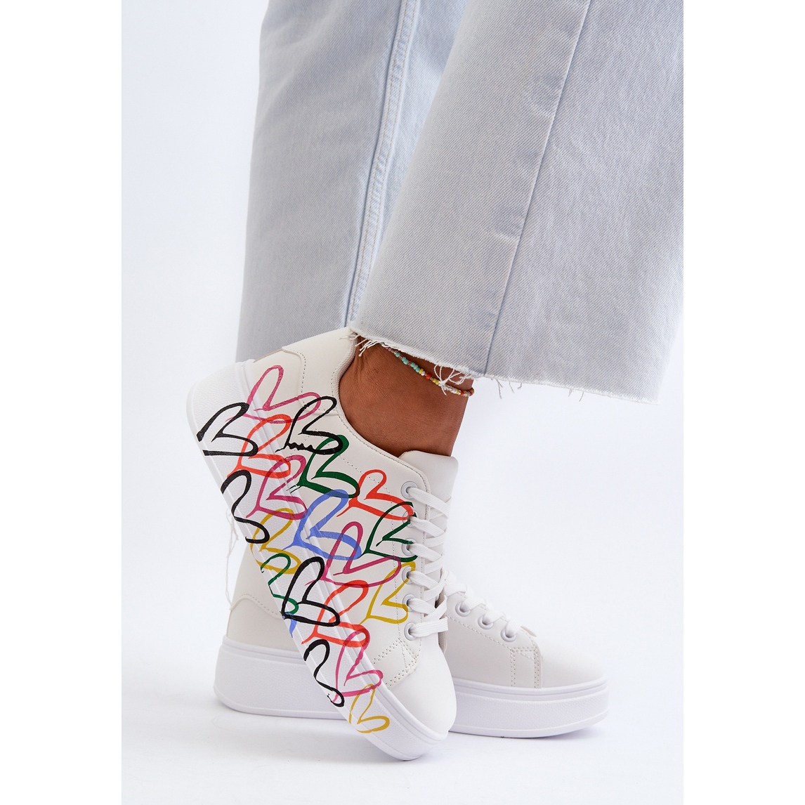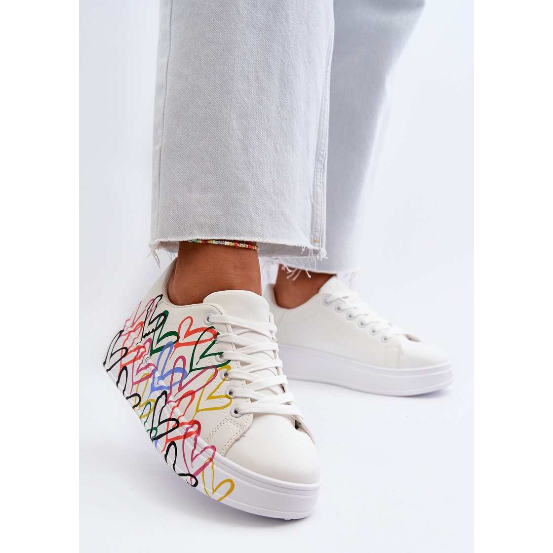 Adidașii de damă unici, fermecați, cu inimioare, sunt un adevărat must-have pentru fiecare femeie care apreciază atât confortul, cât și aspectul original al stilului ei de zi cu zi. Confectionate din piele ecologica de inalta calitate, acestea ofera nu doar un aspect perfect, ci si grija pentru mediul inconjurator. Acești pantofi sunt un exemplu perfect că moda și ecologia pot merge mână în mână.