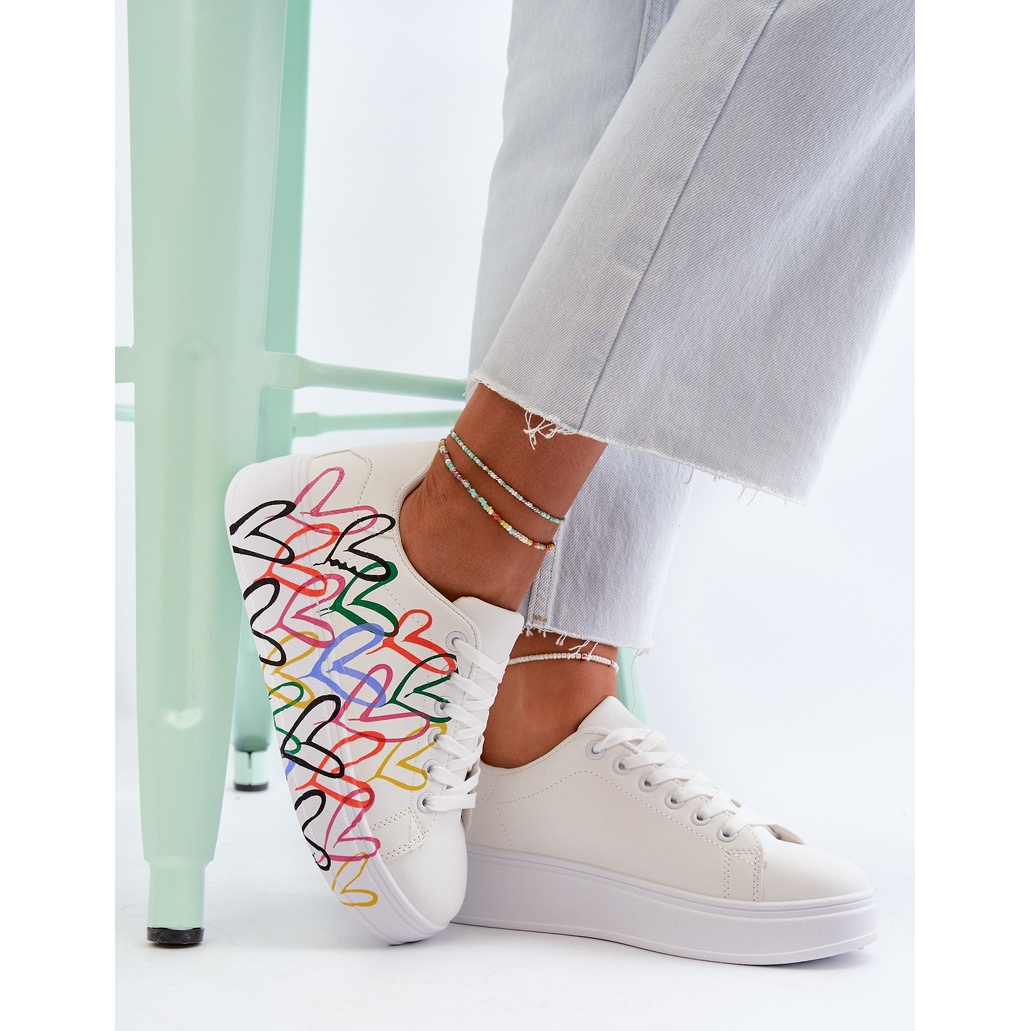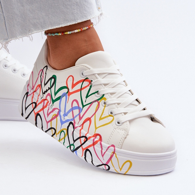 Pantofi de damă cu inimioare, alb - artă combinată cu confort elegant