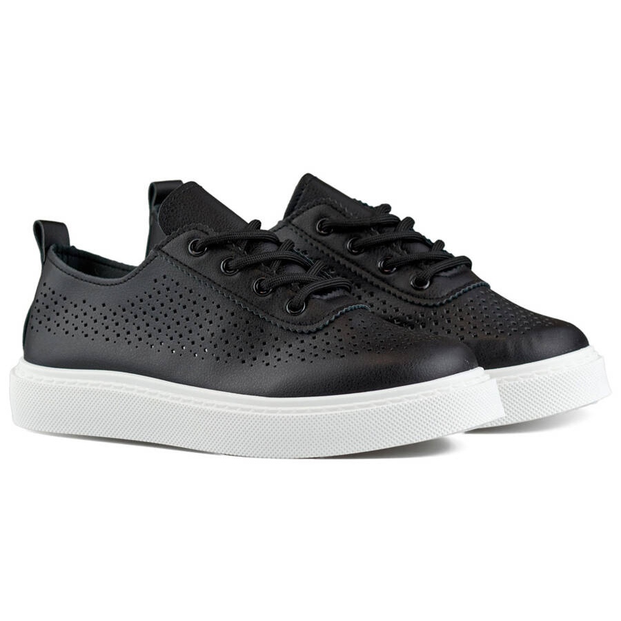 Detalii: Pantofi de dama cu platforma, adidasi ajurati, negri 777-1B negru
