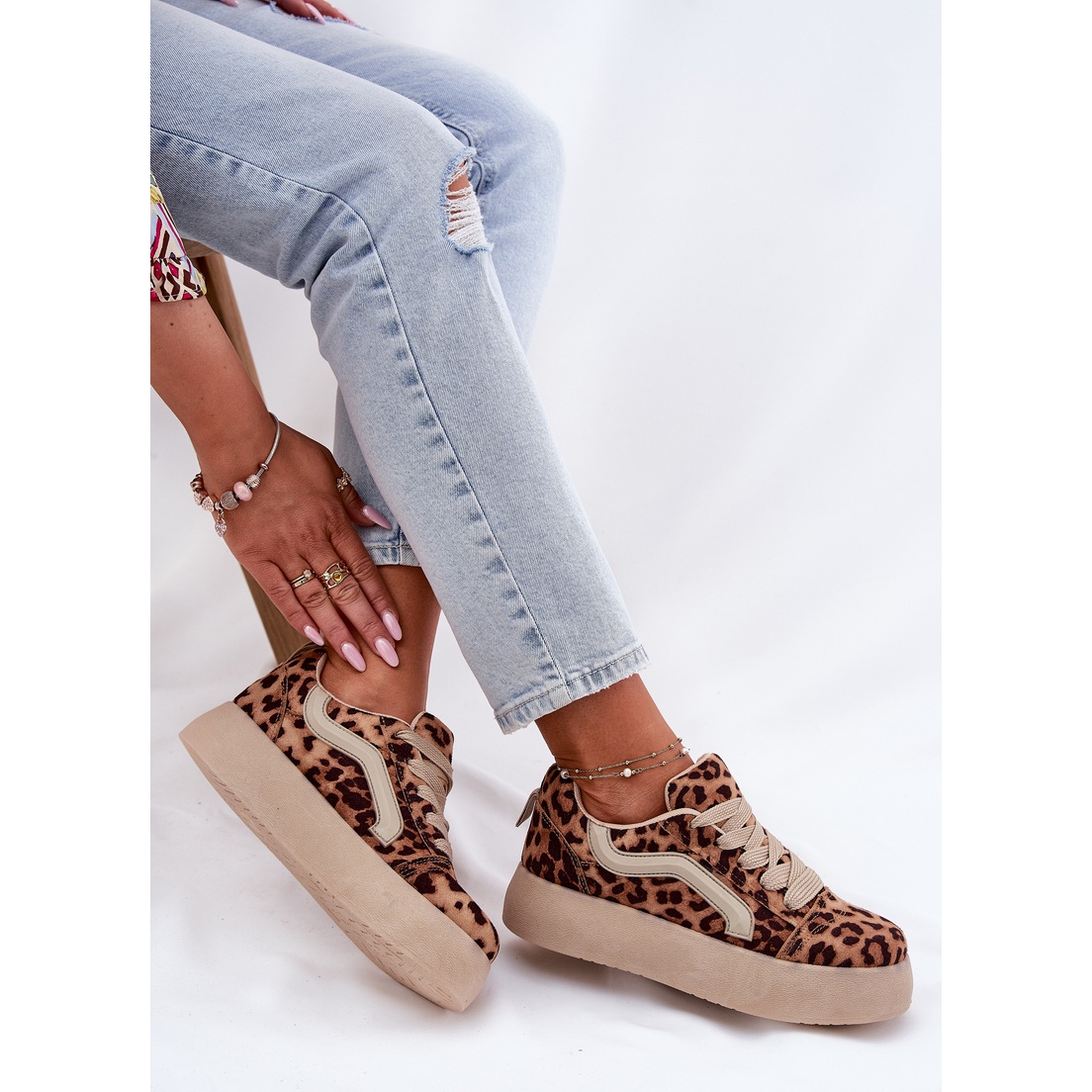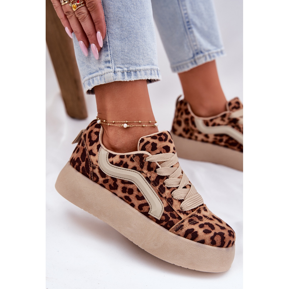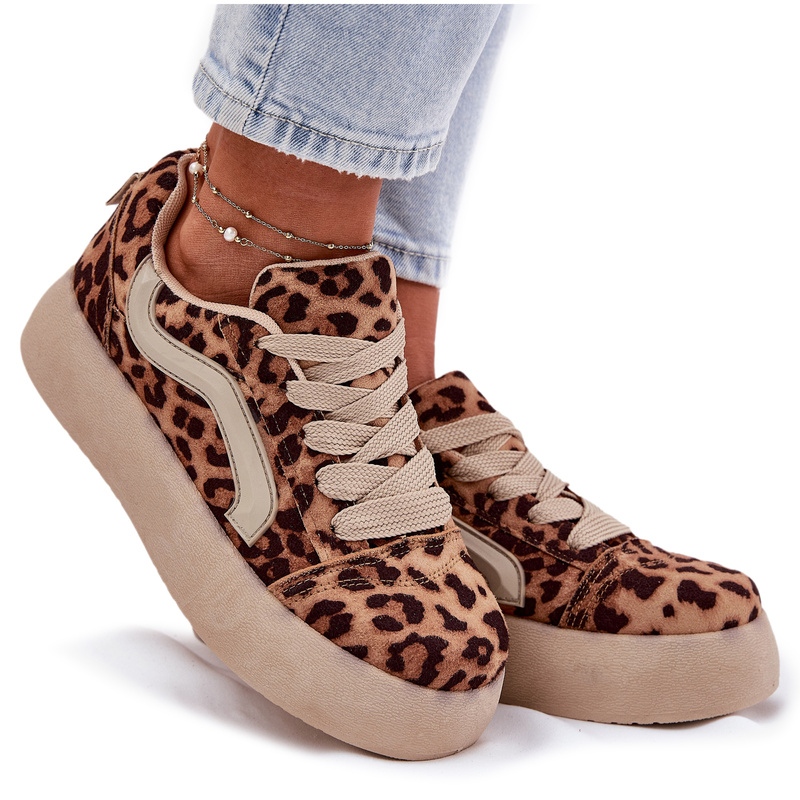 Faceți cunoștință cu adidașii unici de femei de pe platformă într -o nuanță bej la modă, cu un model de leopard! Acești pantofi eleganți din piele de căprioară ecologică sunt combinația perfectă de stil și confort, care vor funcționa perfect atât zilnic, cât și în timpul ieșirilor mai puțin formale.