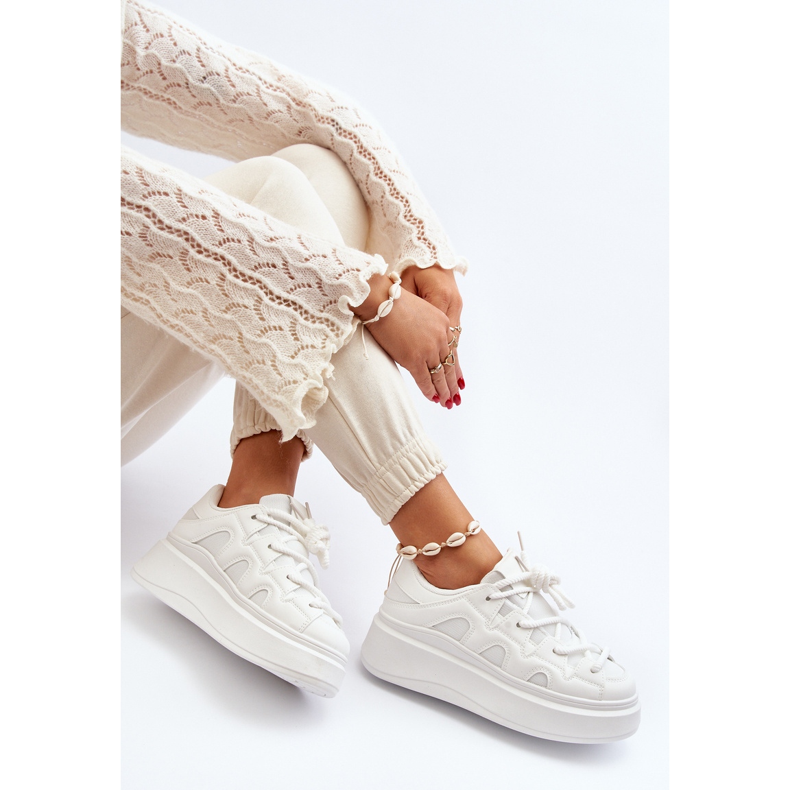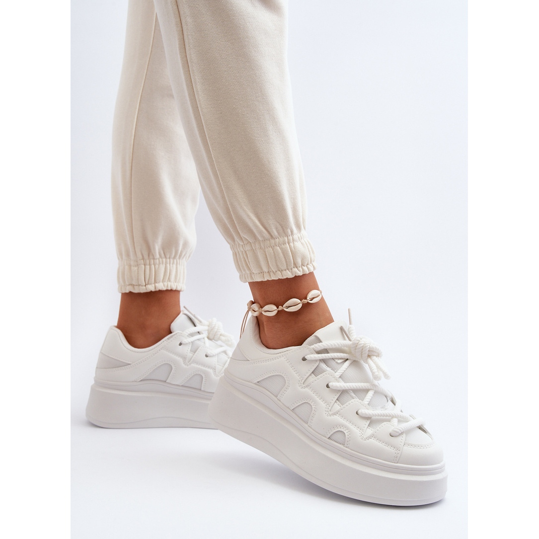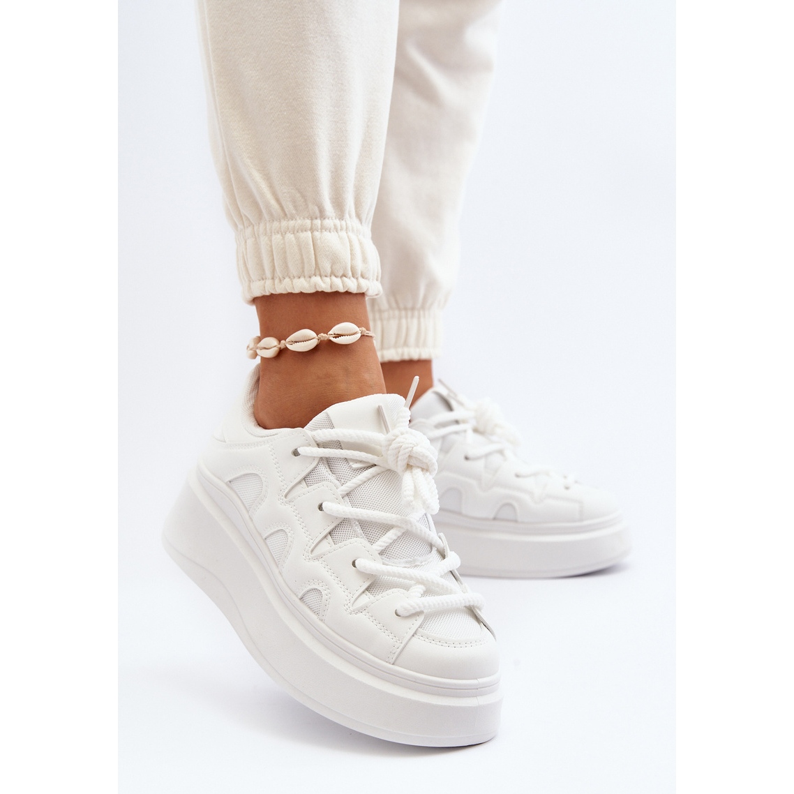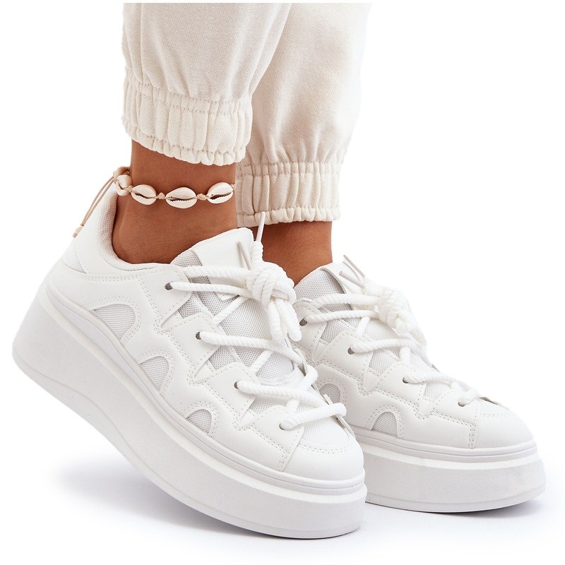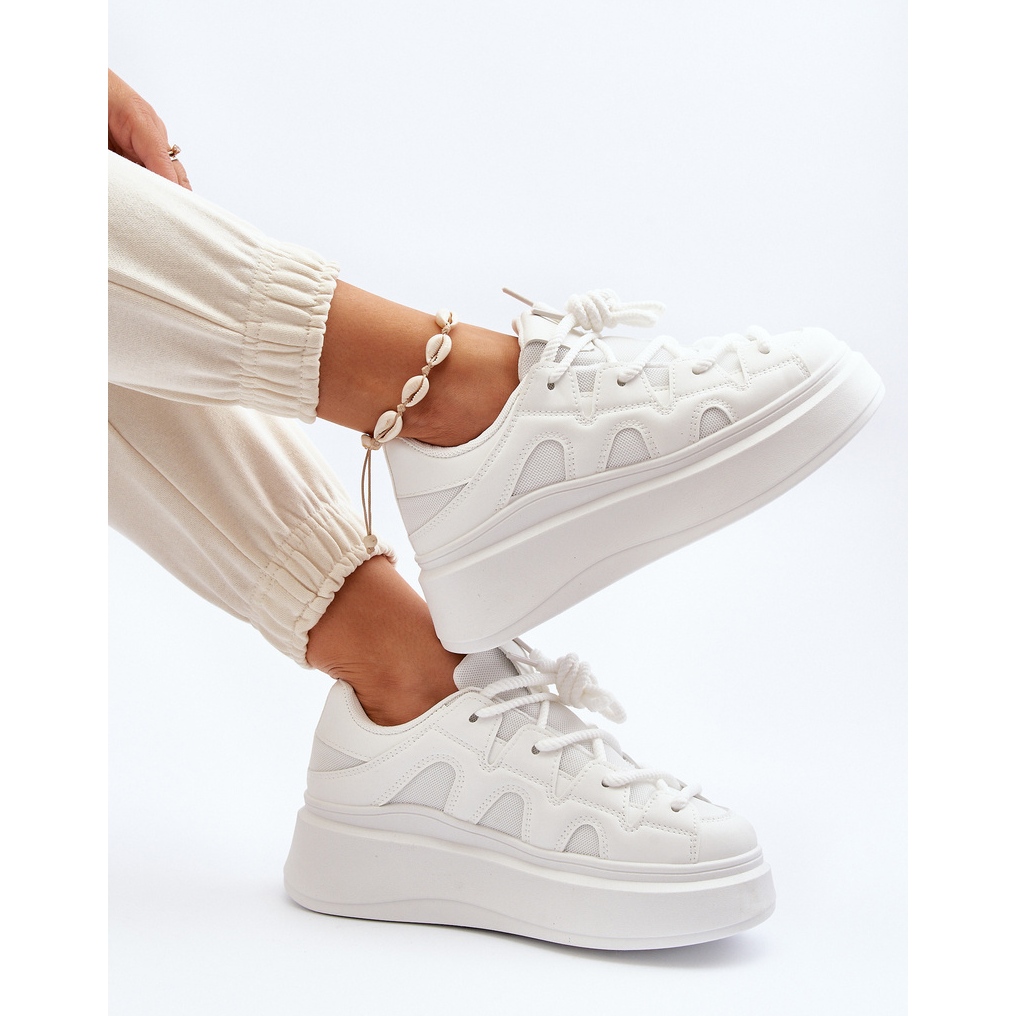Eleganti si extrem de confortabili - asa poti descrie pe scurt pantofii de dama cu sireturi groase in alb. Aceasta este o propunere pentru femeile la modă care prețuiesc confortul mai presus de toate, dar nu doresc să renunțe la cele mai recente tendințe de modă.
