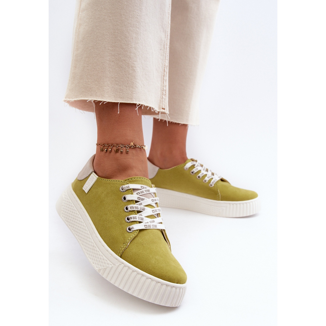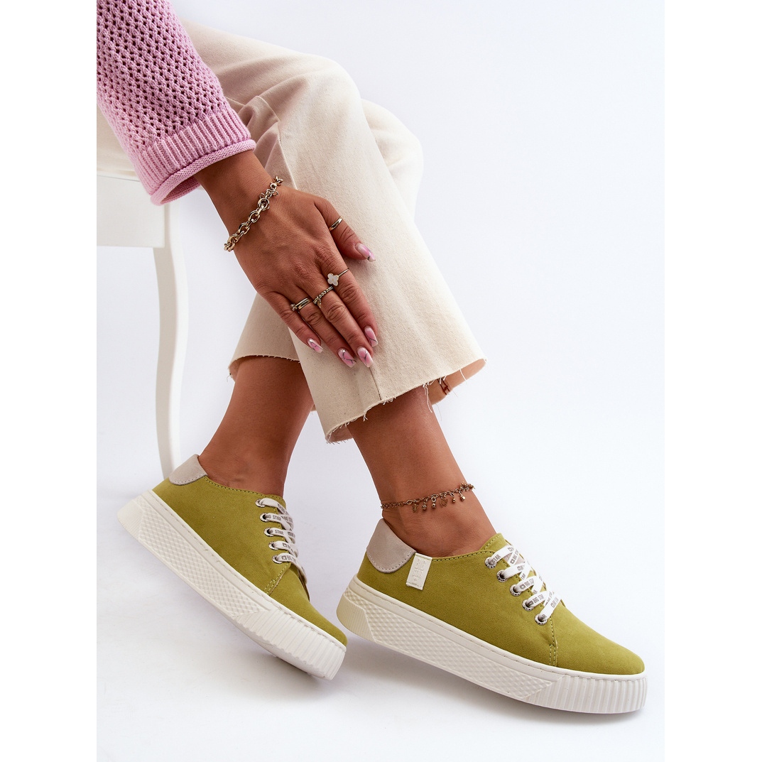 Vă prezentăm adidași Big Star NN276003 pentru femei într -o culoare verde de var, care se încântă atât cu stil, cât și cu confort. Fabricate din piele ecologică de înaltă calitate, acești pantofi combină designul la modă cu o abordare ecologică. Situate pe o platformă groasă, de cauciuc, cu o înălțime de 3,5 cm, acestea oferă o amortizare excelentă atunci când se plimbă, ceea ce le face alegerea perfectă pentru zilele de primăvară-vară.