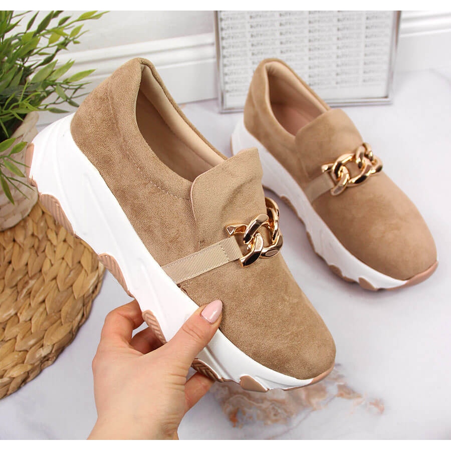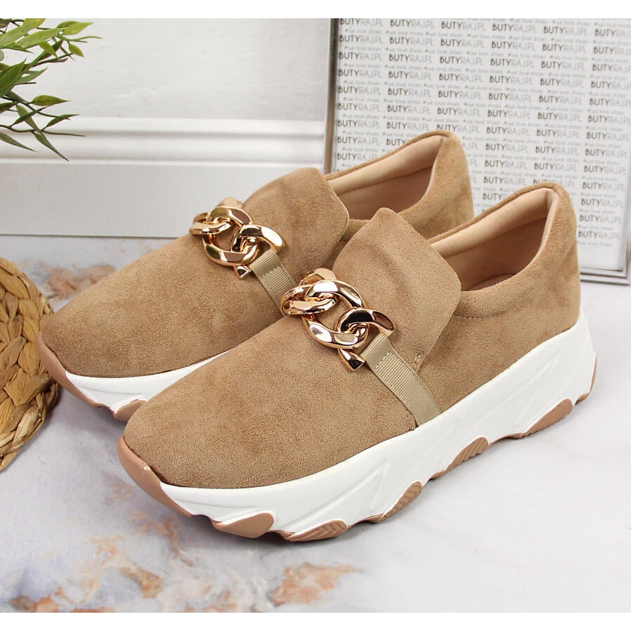 Pantofii slip-on de dama bej cu lant de la renumitul brand Potocki sunt o alegere excelenta pentru femeile care doresc sa combine stilul cu confortul. Acești pantofi eleganți se disting printr-o culoare bej la modă și un lanț decorativ unic pe partea superioară, care le conferă un caracter unic și strălucire - completând perfect orice stil.