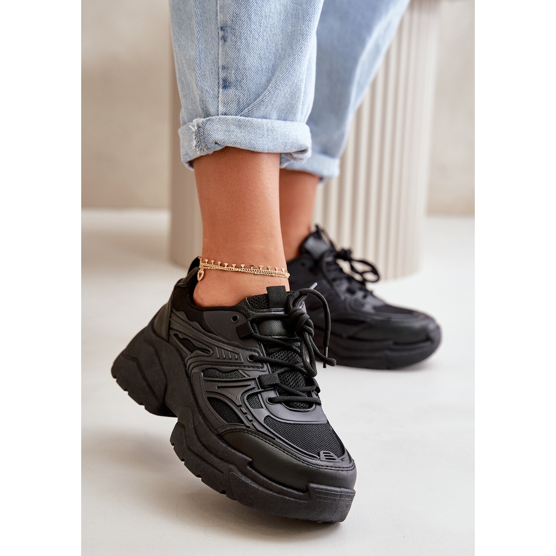 Detalii: Pantofi de damă cu talpă groasă Pantofi sport Lerista negri negru