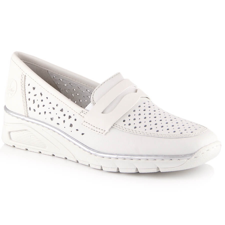 Rieker Pantofi de damă din piele cu pană ajurata Rieker N3356-80 alb