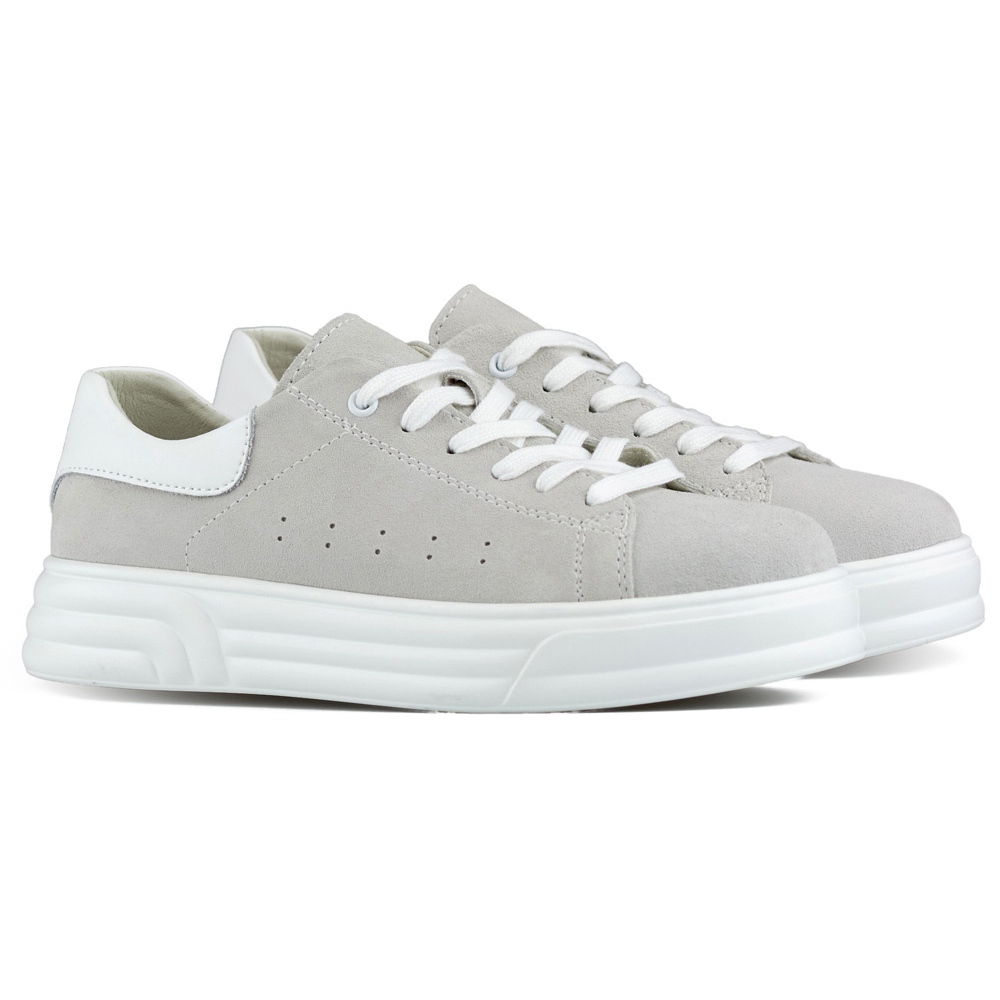 Înălțimea platformei de 4,5 cm face ca pantofii să ridice ușor cifra, oferind în același timp stabilitate și suport. Finisajul scăzut le face ideale să se poarte în fiecare zi, iar culoarea gri cu accente albe le face să se potrivească cu multe stiluri - atât casual, cât și mai elegante.