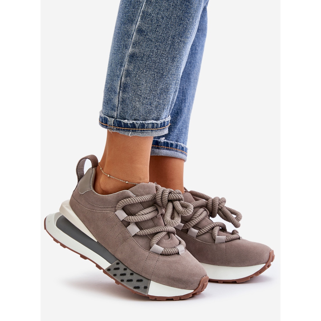 Detalii: Pantofi de damă din piele intoarsa pe platforma cu sireturi groase Artiker 54C1463 gri