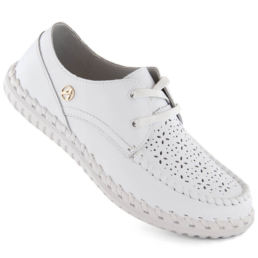 Detalii: Pantofi de dama din piele, mocasini cu siret, alb Artiker 54C-1520