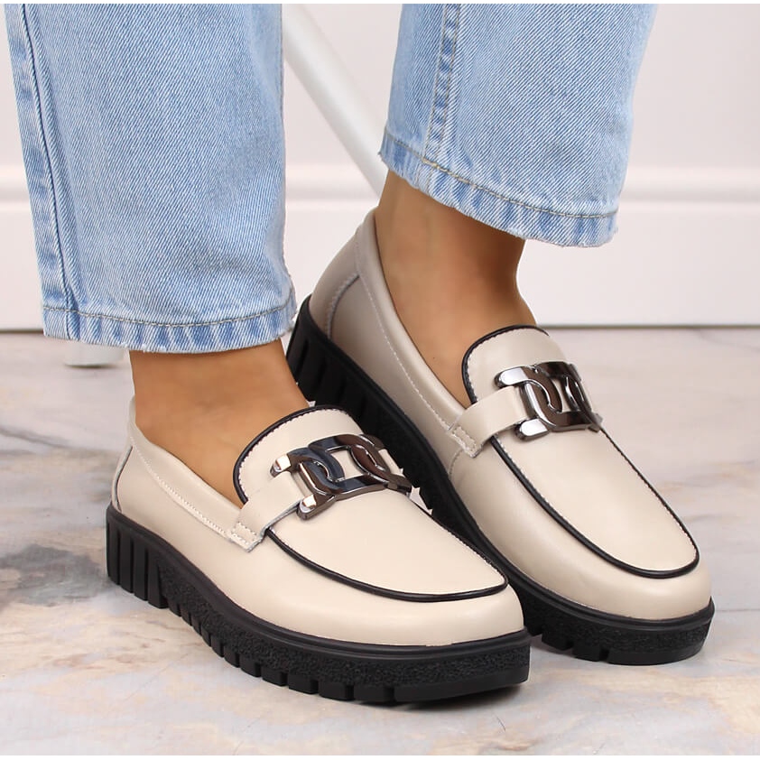 Detalii: Pantofi de dama din piele pe platforma cu lant, bej Filippo DP4728