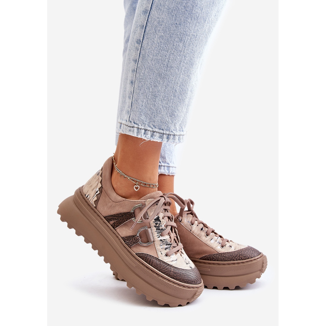 ** adidași de piele pentru femei pe platforma Maciejka 06562-10 Dark Beige **